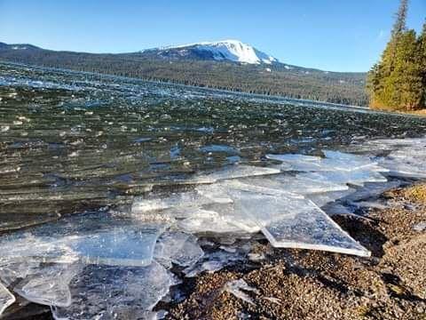 Beautiful, cold morning up at Diamond Lake this morning as the lake has begun freezing over! Photos by Ginger Finch