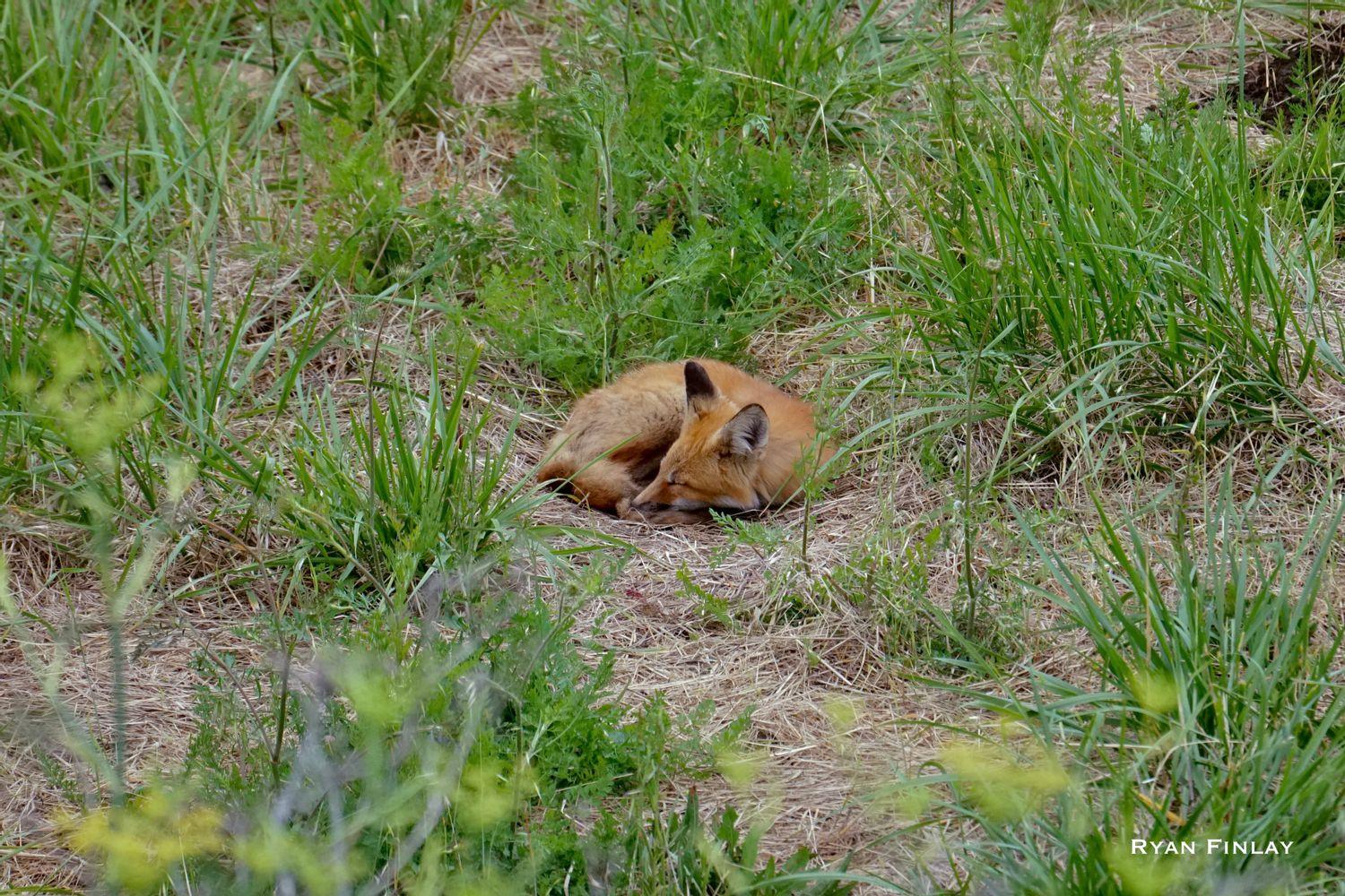 We saw another red fox the other day along I-5 north of Oakland. Here is a Red Fox I caught sleeping in the grass here locally this past year.