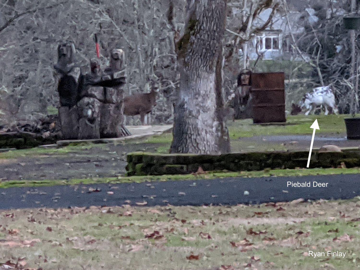 We saw a Piebald Deer out on our walk tonight.