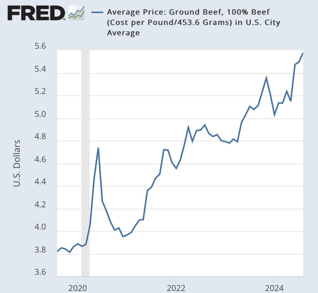 Ground beef is up 45% since 2019. Inflation is never transitory. The rate of inflation increasing can be transitory.