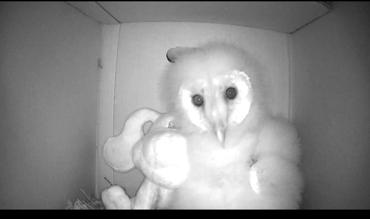 Rehabbers at Umpqua Wildlife Rescue took in a baby barn owl after it fell three stories out of its nest and onto a concrete pad. The owl will likely be rehabbed for a month or two prior to being released back into the wild to give it the best chance of survival. Here is the full message UWR recently shared about the owl: "This little baby barn owl fell three stories straight down, out of a poorly located nest, and landed on concrete. Miraculously, she escaped serious injury, and some kind people brought her in and called us. She will be with us one week as of tomorrow and as you can see in the pictures, she is growing into that big beak of hers very rapidly. She eats between 6 and 8 mice every day and loves to cuddle with her friends. The big bear is her bestie. Please, spread the word about these amazing rodent hunters and if you can, put up a barn owl box. Nature’s free rodent control service. And please, never use poison." If you would like to support Umpqua Wildlife Rescue, you can do so from their website: https://www.umpquawildliferescue.org/ To report injured wildlife at any time, call the hotline at 541-440-6895