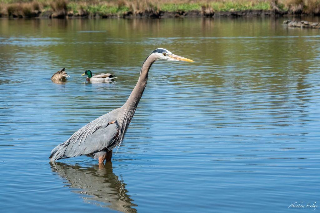 I came across this Great-Blue Heron hunting earlier this morning at the main pond in Stewart Park. When Blue Herons are hunting like this you can get really close because there so focused on hunting they're usually not paying attention to anything else. Photo by Abraham Finlay
