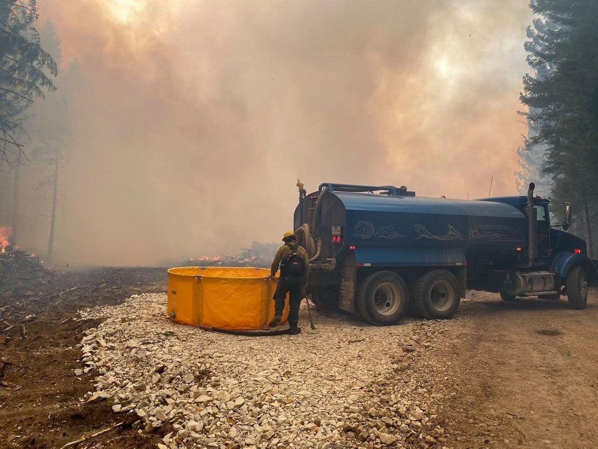 (DFPA) Crews from the Douglas Forest Protective Association responded to a natural cover fire located approximately 4 miles north of Tiller, Tuesday afternoon. Firefighters arrived on scene of the Marshall’s Place Fire shortly after 3:00 PM and reported that it was approximately 70 acres in size, burning in logging slash and second-growth timber. Strong, gusty winds fanned the flames, resulting in numerous spot fires which accelerated the fire’s growth. Nine engine crews, three water tenders, two bulldozers, and numerous industrial landowner representatives worked through the afternoon to construct containment lines around the perimeter of the fire. Three 20-person hand crews have been ordered to assist with suppression efforts overnight. At 7:30 PM, the Incident Commander for the Marshall’s Place Fire estimated the fire to be 200 acres in size and reported that the fire activity was starting to diminish with nightfall approaching. Fire crews will remain engaged in suppression efforts overnight, working to complete and hold containment lines. No homes have been threatened by the Marshall’s Place Fire and the cause of the fire is currently under investigation.