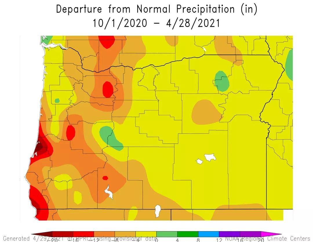 (DFPA) We’re often asked things like “when will fire season begin” and “how bad is fire season going to be this year?” And while we don’t know exactly what will happen, here’s some stats and charts to help illustrate what we may see in the coming weeks to months. From October 1st – April 30th, the NOAA weather station in Roseburg recorded 20.63 inches of rain, which is a little over 10 inches below normal rainfall for that time period. Looking at the “departure from normal precipitation” map, most of the state has seen lower than normal rainfall totals. According to the US Drought Monitor, the majority of Oregon is now in some form of drought condition with the western half of Douglas County being in a “Moderate Drought” and the eastern half of the county being in a “Severe Drought”. NOAA’s three-month weather forecast for the months of May, June, and July is calling for increased chances to see above normal temperatures and below normal precipitation throughout our area. The “significant wildfire potential outlook”, issued on May 1st (and updated each month), shows that portions of southwest Oregon (including parts of southern and eastern Douglas County) are forecasted to see above normal large fire potential by August. In this forecast, “large fires” are defined as a wildfire 100+ acres in size in timber or 300+ acres in grass. So, what exactly does this all mean? If the long-range weather forecast holds true, we very likely could see another busy fire season. And while fire season is not in affect on DFPA protected lands at this time, we are closely monitoring weather patterns and fire conditions to help determine when the 2021 fire season will officially begin.