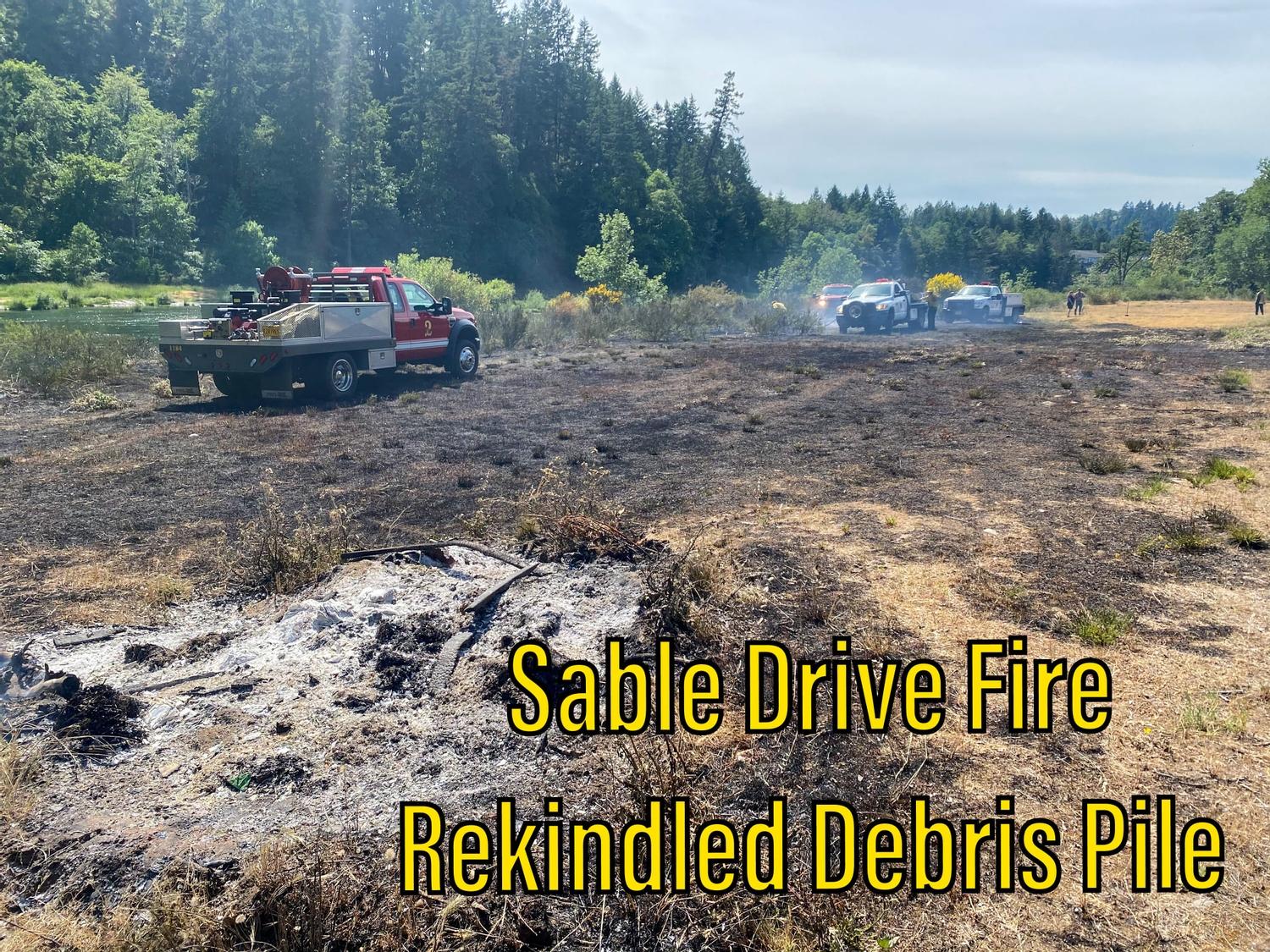 Crews from the Douglas Forest Protective Association and Douglas County Fire District No.2 responded to a grass fire Monday afternoon that was located approximately six miles northeast of Roseburg, near Sable Drive. Firefighters arrived on scene of the Sable Drive Fire around 3:20 PM and reported a slow-moving grass fire that was burning between Sable Drive and the North Umpqua River. The Sable Drive Fire consumed about an acre and a half of grass and brush before firefighters contained the blaze. Crews remained on scene of the fire for about two hours, mopping up hot spots and securing control lines. A preliminary fire investigation indicated that the Sable Drive Fire resulted from a rekindled debris pile that was not fully extinguished. Fire officials with DFPA and local fire departments urge anyone who burned debris over the winter or spring months to recheck the burned area to ensure that the pile was completely extinguished. If not fully extinguished, debris piles can smolder for weeks or even months before rekindling on a warm, windy day. In addition, fire officials remind that the responsible party who burned the debris pile can be cited for allowing the fire to rekindle and escape containment, in addition to being held liable for fire suppression costs and associated damages that result from the fire. Via DFPA