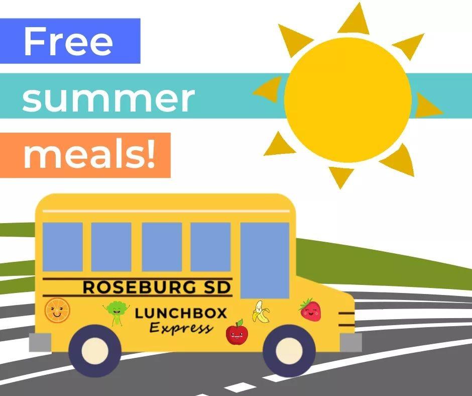 Roseburg Public Schools will offer free meals to children over summer break at various locations throughout June, July and August at Lunchbox Express sites and school cafeterias. The free grab ‘n’ go meals will include breakfast and lunch items and are available for children and teens 18 years and younger. Meals will be served Mondays through Fridays, June 14 to Aug. 13, (except July 5) at the following times and Lunchbox Express sites: • 11 to 11:15 a.m. at Saddle Butte Mobile Manor (222 Saddle Butte Lane) • 11:25 to 11:40 a.m. at Creekside Family Church (731 Newton Creek Road) • Noon to 12:15 p.m. at Eastwood Park (2823 SE Douglas Ave.) • 12:25 to 12:40 p.m. at Thompson Park (1448 SE Thompson Ave.) • 12:50 to 1:05 p.m. at Stewart Park (1700 W Stewart Park Drive) In addition, meals will be served at the following times and school sites: From June 14-18 at the Roseburg High School cafeteria: • 7:45 to 8:15 a.m. (breakfast). • Noon to 12:30 p.m. (lunch). From July 6-29 (Mondays through Thursdays) at the Fir Grove Elementary School cafeteria: • 8 to 8:30 a.m. (breakfast). • 11:30 to noon (lunch). From July 6 to Aug. 12 (Mondays through Thursdays): • 9 to 9:30 a.m. (breakfast) at the Hucrest, Melrose, Winchester and Sunnyslope Elementary cafeterias. • 11:30 a.m. to noon (lunch) at the Hucrest, Melrose, Winchester and Sunnyslope Elementary cafeterias. • 7:15 to 1:45 a.m. (breakfast) at the Jo Lane Middle School cafeteria. • 11:30 a.m. to noon (lunch) at the Jo Lane Middle School cafeteria. • 7:30 to 8 a.m. (breakfast) at the Roseburg High cafeteria. • 11:30 a.m. to noon (lunch) at the Roseburg High cafeteria. Site rules include: • Each child receives a meal that meets or exceeds USDA meal pattern requirements. • Meals are available to all children and teens 18 years and younger. • All meals are grab ‘n’ go style and include both breakfast and lunch. • Adults may pick up meals for students. • Adults may not eat any part of a child’s meal. This summer food program is a part of the USDA Food and Nutrition Service and is administered by the Oregon Department of Education Child Nutrition Programs. For more information, call (541) 440-4023.
