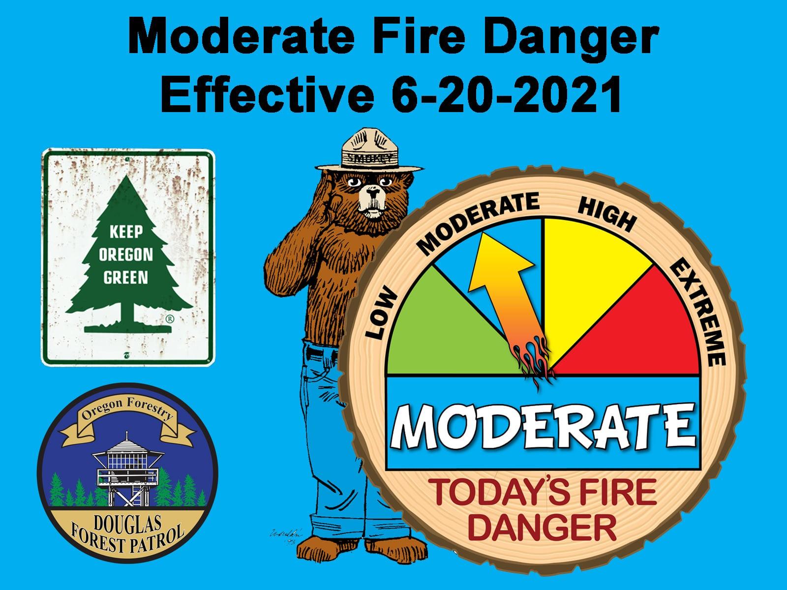 Warming and drying conditions have prompted the Douglas Forest Protective Association to increase the fire danger to Moderate within the Douglas District, effective Sunday, June 20th at 1:00 AM. The Industrial Fire Precaution Level will remain at IFPL I (one). Under DFPA’s Public Use Restrictions, a moderate fire danger rating changes the shutdown times for several activities for the general public. During moderate fire danger, the following activities are prohibited between the hours of 1:00 PM and 8:00 PM: • The cutting, trimming, or mowing of dried or cured grass. This restriction does not apply to the mowing of green lawns. The use of battery or electric string trimmers and the commercial culture and harvest of agricultural crops are exempt from this restriction. • The cutting, grinding, or welding of metal for non-industrial purposes. • The use of power saws for non-industrial purposes. • Any non-industrial improvement or development taking place on private property that utilizes power-driven machinery not specifically mentioned in the Public Use Restrictions. All other restrictions listed under DFPA’s Public Use Restrictions remain in effect and are unchanged. A complete list of DFPA’s Public Use Restrictions can be found online at www.dfpa.net/public-fire-restrictions or by calling DFPA’s 24-hour information line at 541-672-0379. Residents are reminded that additional restrictions or closures may be in place through private industrial landowners or public land management agency on the lands they own or manage. Via DFPA.