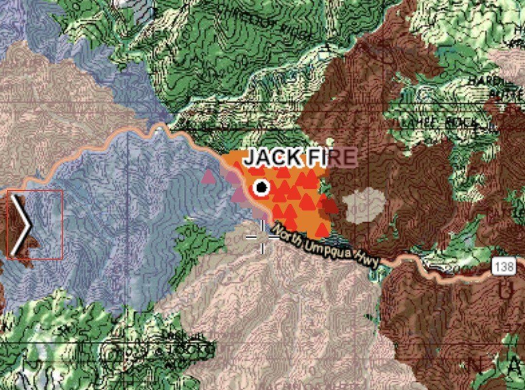 The Jack Creek Fire grew 600 acres Tuesday and now sits at 1,500 acres. Fires from previous years might already be helping limit the spread of this fire. First, you have last year's Archie Creek Fire right next to it to the SW. Then you have the 2017 Happy Dog Fire to the NE. Finally there is the 2002 Apple Fire to the south. Here is the fire update from Tuesday morning if you missed it: https://www.roseburgtracker.com/posts/60e4962ce01a4700043bcf4b Current evacuation map: https://dcor.maps.arcgis.com/apps/webappviewer/index.html?id=c1c9e876f2ed4e1fbfb2eae280b7c57c More information will be shared as it becomes available. Map via: https://mappingsupport.com/p2/gissurfer.php?center=43.322242,-122.677460&zoom=13&basemap=ESRI_scanned_topo_USA&overlay=VIIRS_24_hours,MODIS_24_hours,State_boundary,Wildland_fire_name,Historic_perimeters,ESRI_roads_and_labels&txtfile=https://mappingsupport.com/p2/special_maps/disaster/USA_wildland_fire.txt