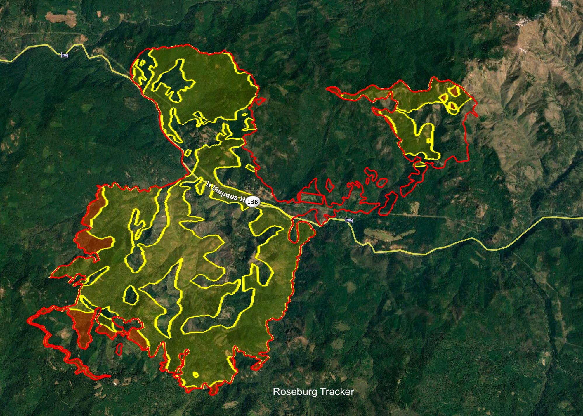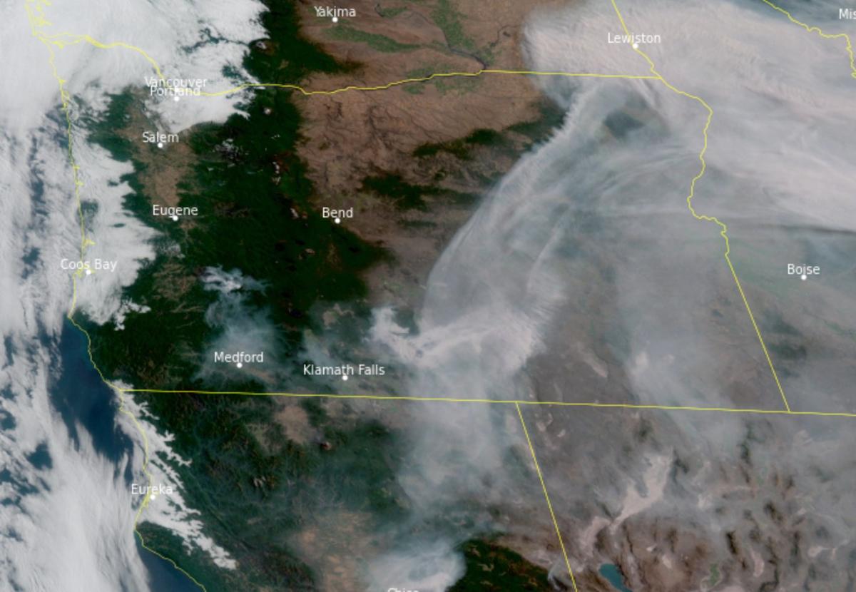 Fire crews have continued to make good progress on the Jack Fire out east of Glide reaching the 25% containment level. The latest IR overflight imaging puts the fire at 16,667 acres. From this mornings IC information report: Fire information: The Jack Fire is currently estimated at 16,667 acres and is 25% contained. North of Hwy. 138 resources continue to successfully hold the fire within the planned containment lines. Firefighters are working to clear vegetation on the remaining portion on the containment line on the northern perimeter. As mop-up is completed, crews will be shifted to different parts of the fire to help with suppression efforts. South of HWY 138, firefighters aided by air resources have established containment lines along the eastern and western perimeter of the fire. Crews will continue bringing line down and around the southern edge of the fire with the goal of completing line construction within the planned containment area. Resources are using a combination of hand and dozer line supported by water drops and fire suppressant to establish the remaining containment line. Firefighters will burn away vegetation when needed to maintain the line. Structures: Structures continue to be monitored by firefighters from NW Team 9. Aviation: Air assets provide ground resources with water and retardant drops to limit the spread of the fire and to help establish and hold containment lines. Smoke Forecast from NWS Medford "Smoke from the main fires in our areas--Jack in Douglas County and Bootleg in Klamath/Lake Counties-- will be pushed eastward this afternoon. Air quality readings this morning suggest most of the morning smoke is focused from the Cascades eastward this morning, and with the expected eastward motion of smoke today we don`t expect significant smoke impacts west of the Cascades. The places likely to be hit with the biggest smoke impacts today will be in the Cascades from Crater Lake northward and Modoc and Lake Counties east of the Cascades. Vegetation remains extremely dry compared to historical records east of the Cascades, and with similar conditions as yesterday, we expect a lot of smoke generation from the Bootleg wildfire again today. We`ve adjusted temperatures downward by about 5 degrees where we expect the heaviest smoke over the next few days, including Summer Lake and Paisley." Images 1st - last night's IR overflight map of the fire 2nd GOES west satellite view of Oregon this morning 3rd GOES west satellite view of Oregon this morning
