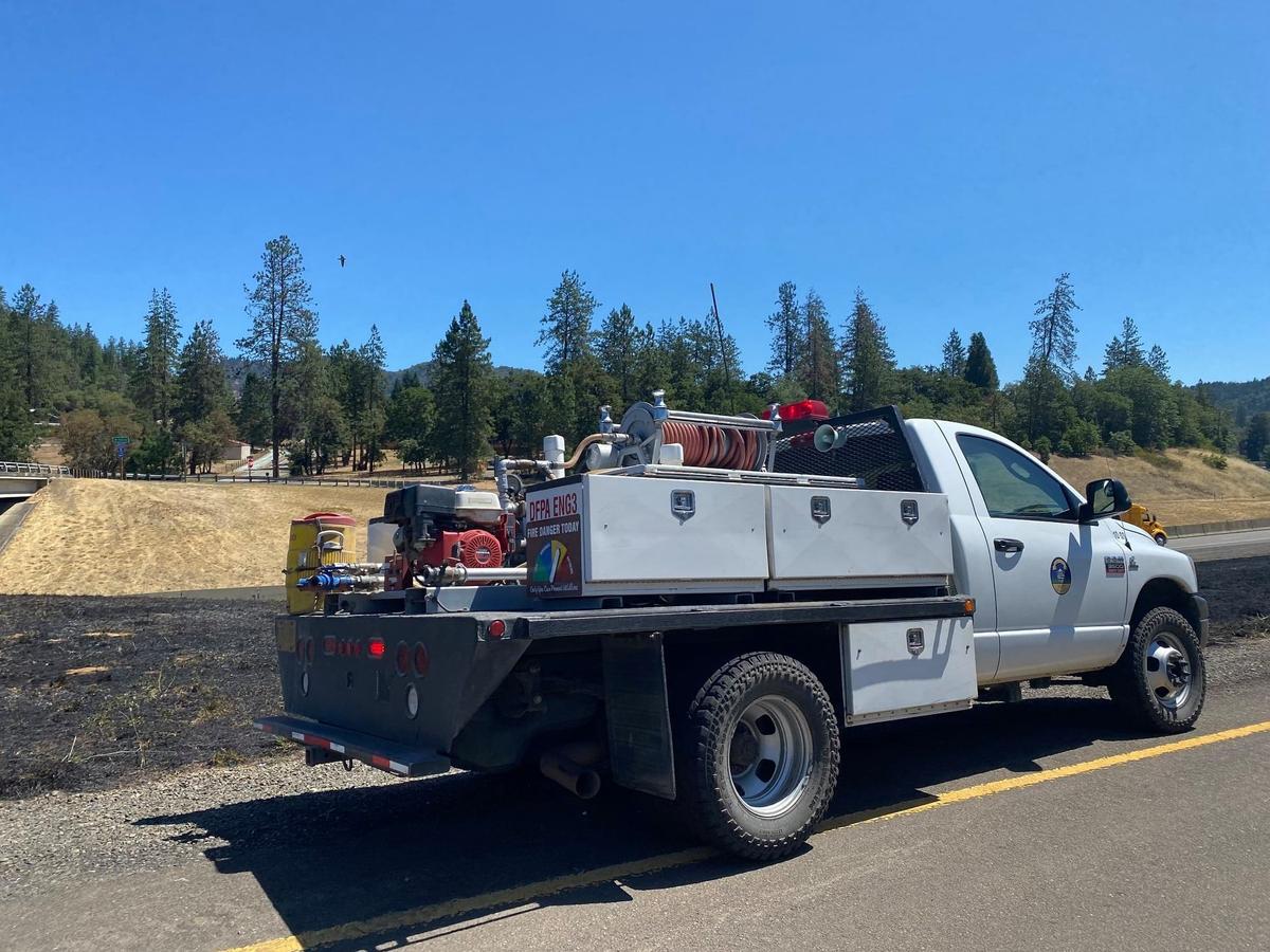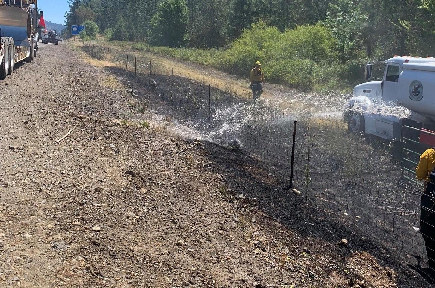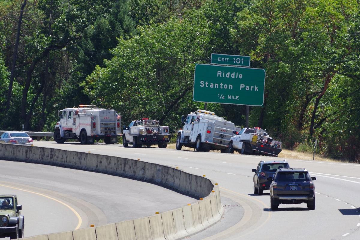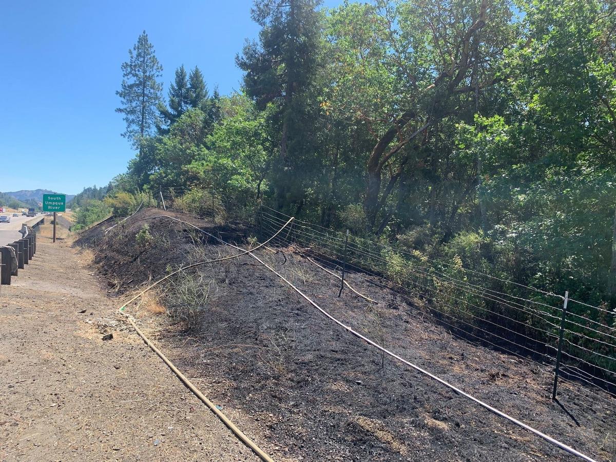 At approximately 11:20 AM Friday morning, crews from the Douglas Forest Protective Association, Canyonville – South Umpqua Rural Fire Department, and Tri-City Rural Fire Department responded to a grass fire that was reported near I-5 Milepost 102 southbound. While enroute to the incident, two additional fires were reported near exit 101 southbound and near milepost 100.5 southbound. A quick and aggressive initial attack by firefighters stopped the forward spread of all three fires at a combined total of about one acre of grass and brush. Firefighters remained on scene until 1:30 PM, mopping up hot spots and securing control lines. While the specific cause of the I-5 Milepost 102 Fires remains under investigation, a preliminary fire investigation has indicated that the cause of all three fires is most likely vehicle-related. Firefighters were assisted on scene by personnel and equipment from the Oregon Department of Transportation and the Cow Creek Band of the Umpqua Tribe of Indians. Via DFPA