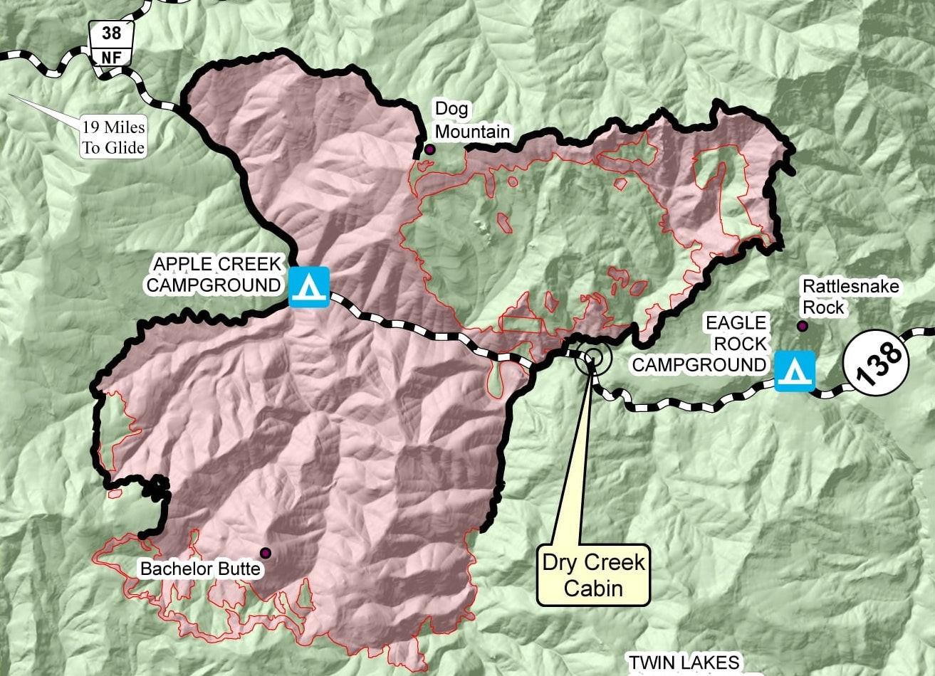 The Jack Fire is currently estimated at 17,994 acres and is now 50% contained. Elijah put together a short video giving a first look into the Jack Fire burn area along Highway 138 out past Steamboat: https://www.roseburgtracker.com/posts/60f5f6fa37dc15000478fa97 Here is the full fire update for Monday July 19 from incident command: Safety on Hwy 138: For the safety of firefighters and the public, please be aware of increased fire traffic and follow posted speed limits along Highway 138. Fire information: The Jack Fire is currently estimated at 17,994 acres and is 50% contained. North of Hwy. 138, Along the northern flank, firefighters deepened the control line, and will continue mop-up and securing line. On the eastern flank, crews will complete burnout operations for increased depth of fire lines. Fallers are removing snags and at-risk trees to make roads safe to travel and crews continue to monitor fire behavior along North Umpqua River. South of Hwy 138, firefighters have prepared control lines and burned vegetation to create a secure control line on the west and southwest flanks. On the south and southeast east flank, crews will utilize heavy equipment and fallers to clear and brush out roads used as control lines. Crews will also be scouting for alternative lines to tie into existing hand line. Contingency line construction will continue with the primary focus to utilize existing roads as much as possible. Fallers plan to remove snags and put in shaded fuel breaks. A shaded fuel break involves removal of shrubs and smaller ladder fuels from under larger trees. Structures: Crews continue to mop-up and patrol around structures in Dry Creek area and around Horseshoe Bend Campground. Aviation: Air support today includes two Heavy Type 1 helicopters with buckets and one Heavy Type 1 helicopter with a tank along with one light Type 3 helicopter. Air assets provide ground resources with water and retardant drops to limit the spread of the fire and to help establish and hold containment lines. Smoke Forecast The smoke from the Jack Fire and Bootleg Fire will be pushed mostly east and away from our area through at least tomorrow morning. Some overnight settling of smoke could occur early Tuesday morning like we have seen in other mornings. Here is a animation of today's smoke forecast: https://www.roseburgtracker.com/posts/60f5ec3037dc15000478fa86 Speed Reduction on Highway 138 Oregon State Police Lt. Steve Mitchell announced today there would be a speed reduction starting Tuesday morning July 20th on Highway 138 around the area of fire camp between mileposts 17-19. That's the area between the Green Bridge in Glide to the Narrows. Speed will be reduced to 35mph in this area. There continues to be a speed reduction further up the highway between mp 40-48, with the lowered speed at 45 mph. Fire Restrictions in Effect The Umpqua National Forest has entered into Public Use Restrictions Level 3. This means campfires are no longer permitted anywhere on the Forest, including in developed recreation sites and Wilderness. Commercial stoves fired by liquid fuel or propane continue to be permitted. Read the attached Forest Order to learn more.
