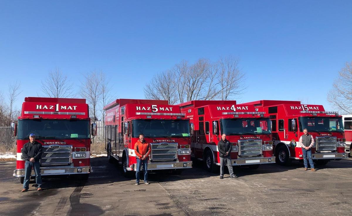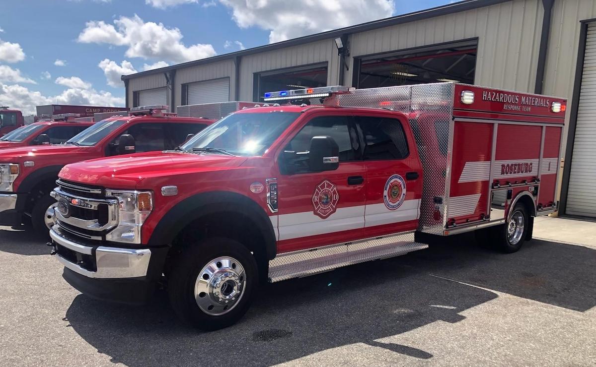 The City of Roseburg Fire Department is excited to welcome two, brand new, state of the art Haz Mat vehicles into the department fleet. Both vehicles, which are owned by the Oregon Office of the State Fire Marshal (OSFM) were provided as part of an agreement and partnership that OSFM has with the City of Roseburg Fire Department. Within the partnership, OSFM provides training, equipment, and emergency response vehicles for hazardous material incident response. In exchange, the City of Roseburg Fire Department provides personnel for incident response and maintenance of equipment as part of the OSFM Regional Hazardous Materials Emergency Response Team #1. The OSFM also has agreements and partnerships with twelve other Regional Hazardous Materials Emergency Response Teams. Of the two new vehicles, one vehicle is a custom built 2021 Pierce Enforcer rescue response vehicle. The design of this vehicle was a team effort with input from several of the Regional Hazardous Materials Response teams including Roseburg’s Team #1. In addition, representatives from Hughes Fire Equipment, Inc. assisted with the design process. The vehicle was built by Pierce Manufacturing in Appleton, Wisconsin. The Pierce Enforcer provides additional seating, increased storage, an onboard generator and weather station, wireless and satellite communications, and the ability to be utilized for incident command. This vehicle is a third generation of response vehicles that OSFM has provided to teams throughout the State of Oregon since inception of the OSFM Haz Mat teams in 1989. The second vehicle received into the City of Roseburg Fire Department fleet is a 2021 Ford F-550 with custom chassis built for use as a quick response vehicle. This vehicle was built in Sarasota, Florida with the custom chassis designed and outfitted by Pierce Manufacturing. Both vehicles were inspected by Roseburg Battalion Chief Drew Fairbairn to ensure specifications met the purchase request and to verify the function of all required options before the vehicles were transferred to the State of Oregon and eventually to the City of Roseburg Fire Department. The State of Oregon Petroleum Load fee provides funding for these vehicles. This fee, implemented in 1989 provides funding for hazardous materials incident response across the State of Oregon. The new response vehicles, personnel, and equipment will continue to be utilized for incident response within Douglas County for hazardous materials incidents, ranging from fuel spills to chemical releases. Both of the new response vehicles will be housed at the Roseburg Public Safety Center. The City of Roseburg Fire Department is grateful for the new vehicles, partnership, and opportunity to work with OSFM as part of the State of Oregon Regional Hazardous Materials Response teams. Via Roseburg Fire Department