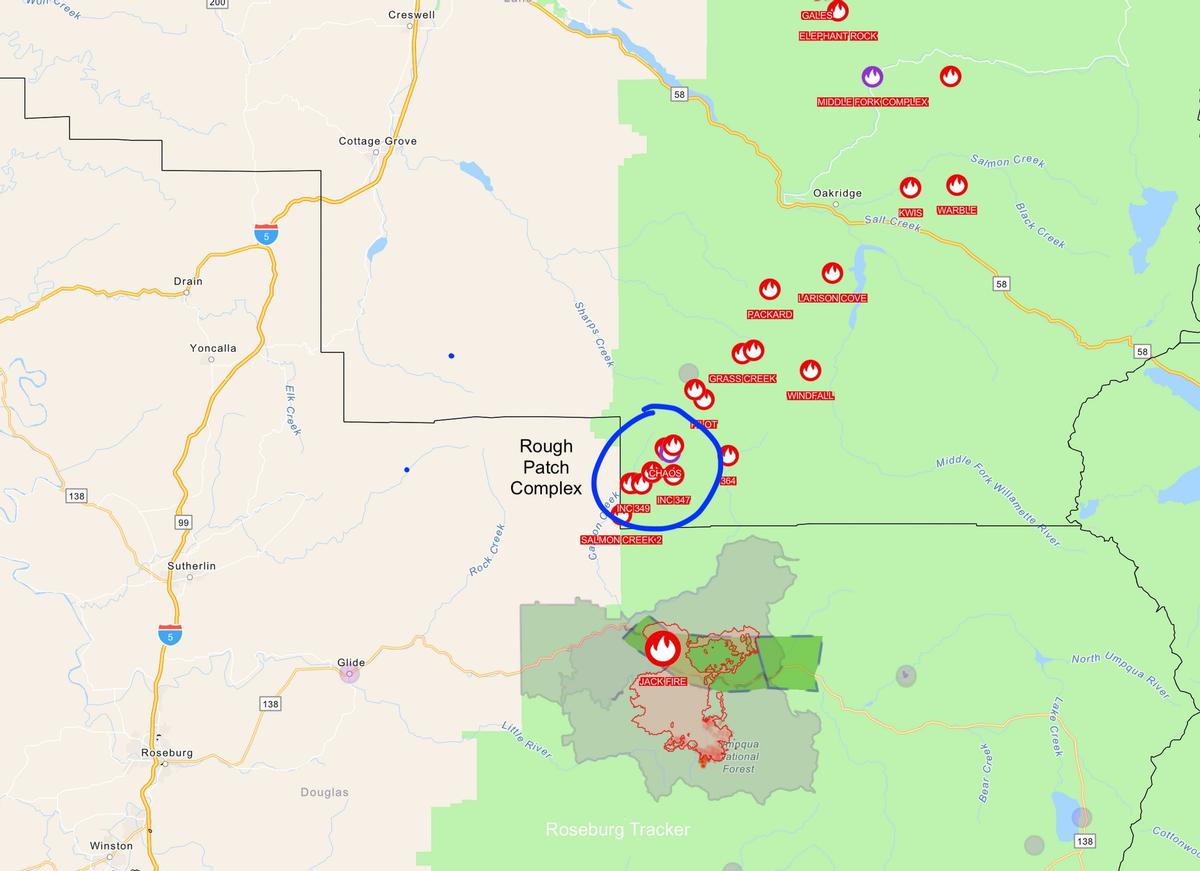 Lightning started several small fires this past Thursday night north of the Jack Fire. Those fires are now being called the Rough Patch Complex. 240 acres are currently being burned in the complex and it's 1% contained. The Jack Fire has now reached 75% containment. Here is the latest update from Incident Command for Sunday August 1st. Fire Information: As of Sunday, August 1, the Jack Fire has burned 23,004 acres and is 75 percent contained. It is currently most active south of Hwy 138 in the east, southeast, and south flank of the fire. Crews there are conducting firefighting operations as conditions allow, including at the 4770 road, on the 28 road, along the 530 road to Twin Lakes, and near Calf Creek. As burn operations occur, please be aware smoke may be visible to the public. North of Hwy 138, firefighters are successfully holding control lines and continuing mop-up operations, patrol and monitoring activity on the northeast, north, and west perimeters of the fire. Multiple small fire starts have recently ignited in a remote location at the Upper Steamboat Creek Drainage, following lightning storms that passed through that vicinity. Management of these new fire starts north of the Jack Fire has been combined and named the Rough Patch Complex. There are approximately 22 new starts burning about 240 acres. As of 7:00 a.m. this morning, Northwest Team 13, under the leadership of Brian Gales, has assumed command of the Rough Patch Complex. Today the new resources for the Rough Patch Complex will be working on the 650 and 651 roads and scouting for potential containment lines and opportunities for suppression. Crews will be assisted by firefighters from the Umpqua National Forest and the Douglas Fire Protection Association. The Rough Patch Complex is burning in an area of limited access, narrow roads, steep terrain, and high fuel loads, which will present a challenge for suppression operations. JACK FIRE Quick Facts: Fire size: 23,002 acres Location: 20 miles east of Glide, OR Containment: 75 percent Cause: Under investigation Personnel: 545 Date of Ignition: 7/5/2021 Structures Threatened: 243 Injuries: 16 Aircraft: 5 (shared) Dozer: 2 Engine: 21 ROUGH PATCH COMPLEX Quick Facts: Fire size: 240 acres Location: 20 miles east of Glide, OR Containment: 1percent Cause: Under investigation Personnel: 74 Date of Ignition: 7/29/2021 Structures Threatened: 0 Injuries: 0 Aircraft: 5 (shared) Dozer: 4 Engine: 3 Structures: Firefighter presence continues within Dry Creek patrolling and monitoring the area. Aviation: A heavy Type I helicopter with bucket recently joined two heavy Type I helicopters with buckets, one heavy Type I helicopter with a tank, and one light Type III that were already assigned to the Jack Fire. All five helicopters are now supporting air operations for both the Jack Fire and the Rough Patch Complex. A Temporary Flight Restriction (TFR) has been established over the Jack Fire and Rough Patch Complex to protect aircraft working on firefighting operations. All unauthorized aircraft, including drones, are prohibited from flying over the fire, as they can interfere with authorized air support operations. Please do not use drones or any other restricted aircraft listed near the fire as it is a federal crime. Safety: Our primary mission continues to be managing wildfires, taking care of the community, and meeting the objectives identified by the agency administrators. Additionally, protecting the community and our firefighters from contagious diseases, such as COVID-19, is also a priority. COVID precautions and procedures have been implemented to ensure the safety and health of all fire personnel and the community we serve. Our staff will be continually monitored to ensure protection measures are effective and in alignment with the primary objectives of protection from wildfire. Safety on Hwy 138: At this time, Hwy 138 remains open. Be aware there are possible speed limit changes and increased traffic due to fire personnel. Please follow the posted speed limit for your safety and the safety of firefighters. Closures: The Umpqua National Forest’s Horseshoe Bend Campground remains closed to ensure the safety of the public. Visitors can call the North Umpqua Ranger Station at 541-496-3532 for details on whether additional national forest sites and facilities near the Jack Fire are open. Evacuations: As designated by the Douglas County Sheriff's Office, the current evacuation levels remain the same. A current evacuation map can be found at www.dcso.com/evacuations. Weather: Although Saturday turned out warmer than predicted, weather conditions over the fire area have stabilized somewhat due to increased relative humidity, which will be about 30 to 35 percent today. Temperatures will be in the upper 80s at low elevations (2500 ft.) and high 70s to low 80s at high elevations (4000 ft.). There is a 15 percent chance of thunderstorms. Winds will remain terrain-driven at 5 to 10 mph, with gusts around 15 mph. Incident meteorologists forecast that similarly stable weather conditions will prevail through Wednesday.