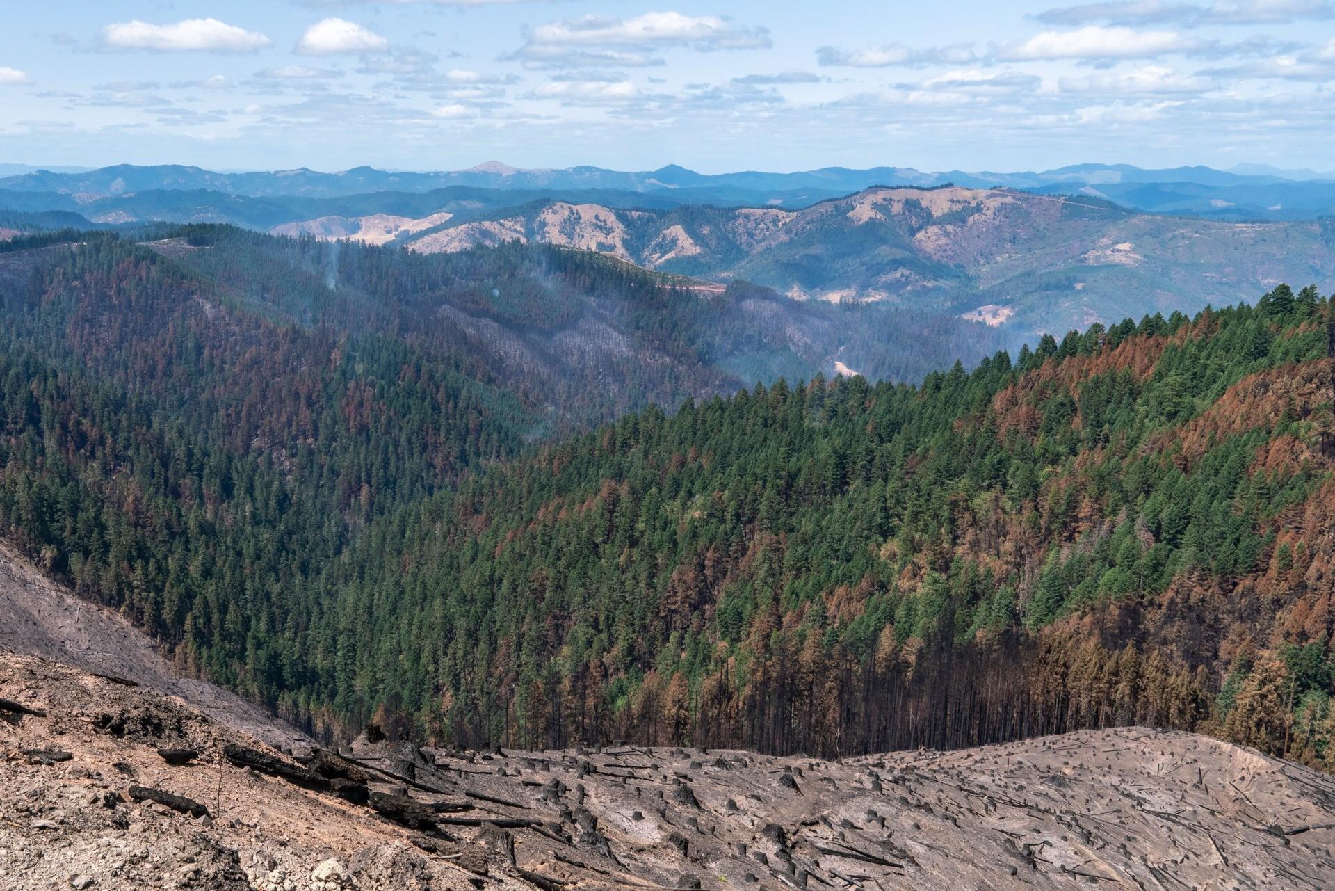Due to reduced fire activity, the Douglas County Sheriff's Office has lifted the Level 1 (Be Ready) evacuation notice for Ferguson Lane and Moore Ranch Road, north of the Poole Creek Fire. There are no evacuations associated with the Skyline Ridge Complex at this time, but evacuations on the Devil's Knob Complex are still in effect. Check the Douglas County website at https://www.dcso.com/EVACUATIONS for more information. Firefighters have made significant progress on the Skyline Ridge Complex. All of the smaller fires are fully contained and containment for the Complex has risen to 93%. The number of personnel on the fire is dropping rapidly as crews are reassigned to other fires or sent home to rest. The northern part of the Poole Creek Fire and some areas near Stouts Creek did not burn clean. Known as “dirty burns”, these areas have enough vegetation remaining after a fire passes through them to continue to have small flare-ups. Slow, methodical work is needed to locate residual heat and cool it. While steep slopes and hazardous snags complicate the work, crews detect less heat in these areas each day. Gusty winds are expected this afternoon and evening, increasing the danger of falling snags and other hazard trees. Firefighters will stay out of snag patches during the windy spells. The interior of the fire has some unburned pockets of vegetation which may burn in the coming days. Firefighters will continue to monitor for interior flare-ups and will take action if necessary. The public is asked to please avoid driving the roads being used by firefighters. Many of the roads have limited room for passing vehicles. On Friday, Oregon Department of Forestry Incident Management Team 1 (ODF IMT1) will return the management of the Skyline Ridge Complex to local fire managers. At that time, the Incident Command Post (ICP) near Myrtle Creek will close. This is the last daily update from ODF IMT1. The Team would like to thank the local community and partners for their support during this incident. Current acreage burned: 5,760