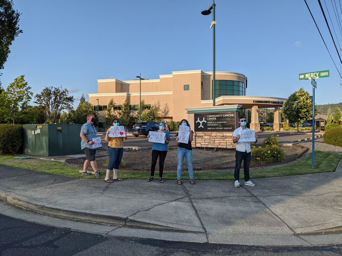It was a joy to gather with other community members this evening to communicate our gratitude for all the staff at Mercy Medical Center this evening! We appreciate you all! Hang in there! ❤️