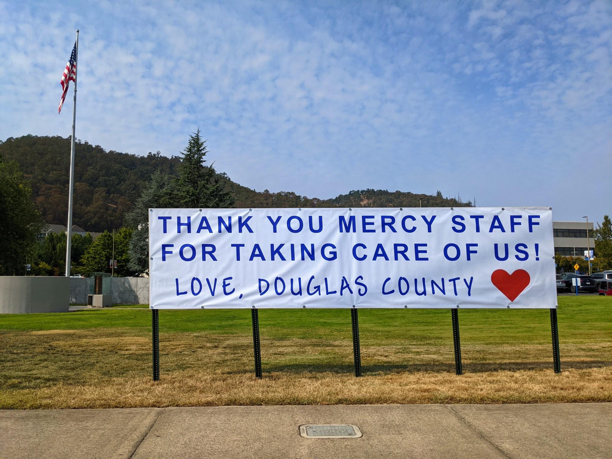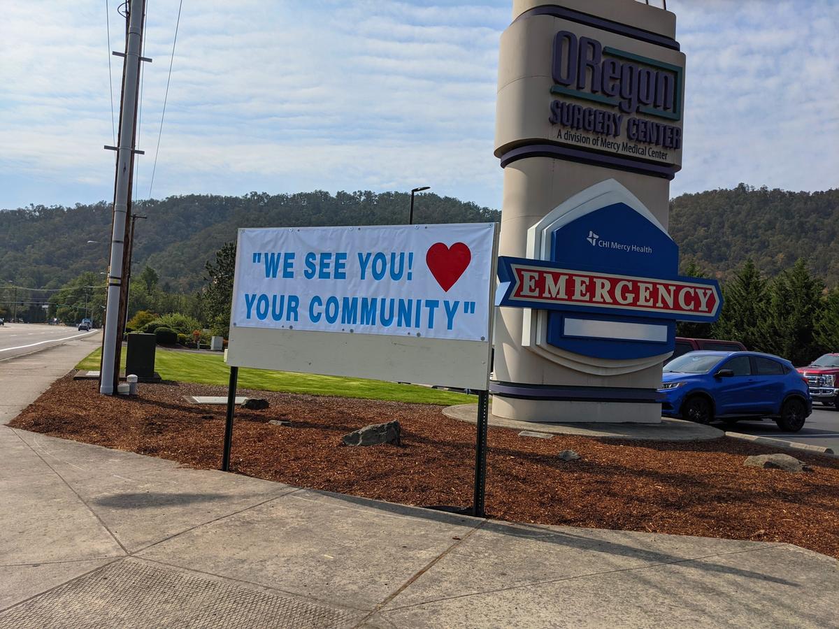 Our support signs have been put up out in front of Mercy Hospital! ❤️ Thank you to the awesome Mercy landscaping crew for installing them for us and Aviva Health for sponsoring the signs! Also, a generous local organization has sponsored two food trucks to feed Mercy staff on both shifts Friday as a show of support! 🙏 Thank you for caring for our community!