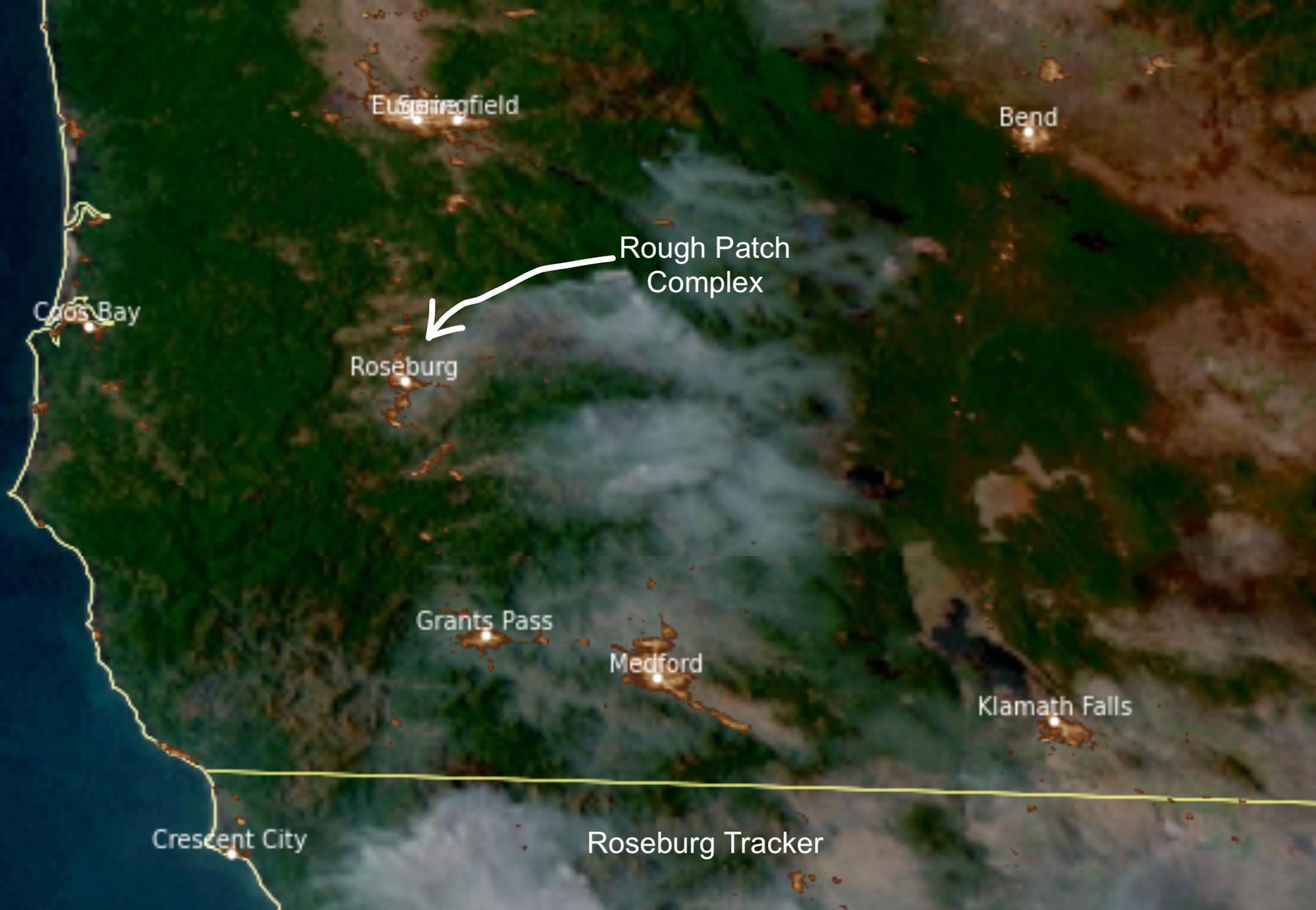 If you looked up at the sky tonight you probably noticed a bit of smoke moving into the area, though it was pretty high in the atmosphere. The smoke is coming from the Rough Patch Complex fire out NE of Glide. The fire is currently at 46,092 Acres and is 36% contained. The good news is that rain is coming on Saturday and we should get a good soaking! This will help put a significant damper on area fires.