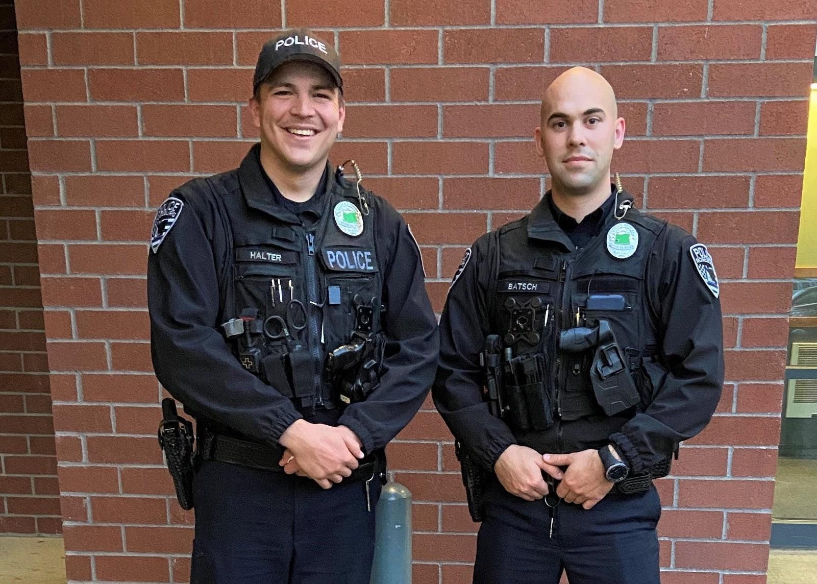 Three Roseburg Police officers were recognized Tuesday, Oct. 5, for their heroic actions rescuing a drowning woman from the South Umpqua River last week. Roseburg Fire Chief Monte Bryan awarded Roseburg Fire Department challenge coins to Roseburg Police Sgt. Jeff Eichenbusch and officers Dawson Batsch and Brandon Halter in an informal ceremony Tuesday morning at the end of their overnight shift. Sgt. Eichenbusch, who supervises the two officers, also presented Batsch and Halter with official lifesaving commendations after the two jumped in the river to save Brittany Rose Shepherd, 24, of Roseburg. “The Fire Department would like to recognize Sgt. Eichenbusch, Ofc. Batsch and Ofc. Halter for their lifesaving actions. We are fortunate to be partnered with such dedicated law enforcement professionals,” Bryan said. The north bank of the South Umpqua River was steeped in darkness when Sgt. Eichenbusch pulled his patrol car onto the bike path under the Stewart Parkway bridge shortly after 4 a.m. Wednesday, Sept. 29. Sgt. Eichenbusch was first on the scene just minutes after Roseburg resident James Smith called Douglas County Emergency Communications for help after Shepherd went skinny-dipping but couldn’t make it back to shore. The sergeant had a flashlight, but there was no moonlight to guide him as he ran down to the riverbank to try to find Shepherd and Smith, who had been on a date. “I didn’t see anybody,” Sgt. Eichenbusch said later. In the predawn dark, he could hear only gasping and coughing coming from somewhere out on the South Umpqua. “I could hear what I assumed was her,” he said. “It sounded like somebody struggling in the water.” He began pushing through wild, overgrown trees and brush blocking his way down a steeper embankment to the river when Smith called out to him, saying Shepherd was closer to the bridge. Smith had told dispatchers he was unable to help Shepherd. “I actually never saw him. I just listened to his directions,” the sergeant said. Sgt. Eichenbusch ran another 100 yards down to the river’s edge and scanned the river for Shepherd using his flashlight. Officer Brandon Halter arrived on the opposite riverbank with another flashlight. The beams of light zeroed in on her at the same time. “All we can see is just her face,” Sgt. Eichenbusch said. “You can’t even see her whole head. She’s just looking up at the stars. She’s not looking toward the shore -- which led me to believe she was struggling so hard, she was just trying to keep her face above water.” Officer Halter sped in his vehicle over to Sgt. Eichenbusch, whose position by the bridge was closer. At the same time, Officer Dawson Batsch arrived and found Smith about 50 to 70 yards upstream. The officer, who competed on Roseburg High School’s swim team from when he was a sophomore until graduating in 2012, wondered why Smith was completely dry, but didn’t ask because Smith was shaken up and clearly grateful the officers had arrived. To the officer, Smith seemed unconfident in his swimming ability. Together, Batsch, 27, and Smith forced their way through the brush to the riprap rock-strewn riverbank. In the extreme darkness, they could barely see anything. Just as Batsch got a good sight on Shepherd and told Smith he was going in to get her, Roseburg firefighters arrived with a rescue throw bag. Batsch and Smith tried to throw the rescue bag and rope to Shepherd, but the rope got caught in the brush. Shepherd was so focused on treading water that Batsch knew she wouldn’t grab the rope even if it hit her. Batsch quickly slipped off his external ballistic vest, belt, gun and other gear, grabbed a lifejacket from a firefighter and got into the water. Further away, Sgt. Eichenbusch saw the rope get hung up on bushes and told Officer Halter, “Watch my stuff. I’m going in.” But Halter told his sergeant, “No, I’ll do it,” quickly removed all his gear, advanced along the riverbank to get closer and picked up an orange life preserver to assist Shepherd. The air temperature was in the low 50s. Batsch, who’d worked as a lifeguard at the YMCA in Roseburg, didn’t just dive in because he didn’t know how deep the river was. He walked in until it was too deep to walk and began swimming. “It was crisp. That water was not warm,” Batsch said later. “It wasn’t extremely cold. It wasn’t like wintertime.” As he swam 25 to 30 yards, he kept his eyes on Shepherd and saw her sink underwater a couple times. But she kicked and brought herself back up each time. Batsch thought to himself that she was not going to last another 60 seconds. As a lifeguard at the Y, Batsch rescued one other person: a little boy who was starting to go under. But that was in the middle of the day in a swimming pool with other lifeguards there. This was 4 in the morning, in the river, in the dark. On shore, Sgt. Eichenbusch also saw Shepherd losing strength. He could see she was exhausted – so exhausted, she was no longer able to cough the water out of her throat. Just before the officers reached her, she stopped making any sound. “I had no doubt in my mind that in a few more seconds she was going under water. As a supervisor, I was thinking it was going to be a recovery, not a rescue. You could tell she was very much struggling to stay up,” Sgt. Eichenbusch said. The water was too deep for any of them to touch the river bottom where Shepherd was. And Shepherd, by all accounts, was tiny. And intoxicated. Batsch sidestroked beside her so he could come up behind her as he’d been trained, grabbed her and supported her with the side of his body – making sure her shoulders, face and head were completely out of the water. Halter swam right behind Batsch with the life preserver/buoy. “When I got there, I don’t know if she even realized that I was there,” Batsch said. “She was completely gassed. She just had no fight in her. She just kind of went limp when I grabbed her.” Batsc