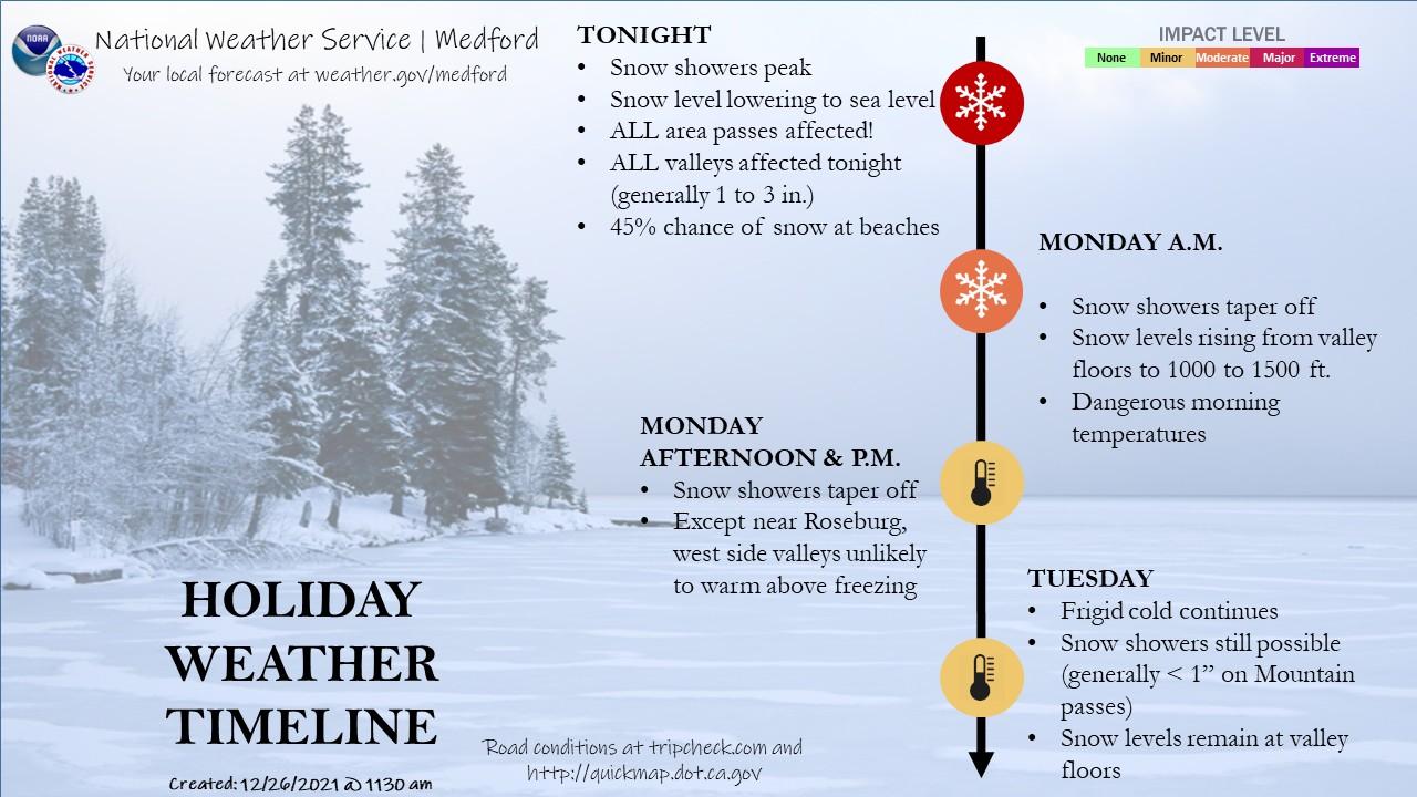 Sunday Night Weather Update: Another 1-3 inches of snow could fall overnight and temperatures are going to drop turning the wet, slushy snow into ice. Be very careful when driving late tonight and tomorrow morning! After that, there are a few more chances this week for a small amount of snow to fall but the big thing coming up is some extreme cold with temps dropping into the 20's into next weekend. We'll have a better idea about snow potential in the next day or so for the coming week. Be very careful when out walking around as well, it's easy to hit icy spots and take a painful tumble. Still some customers of both Pacific Power and Douglas Electric are without power. Hopefully, that gets restored soon. I hope this finds you all well!