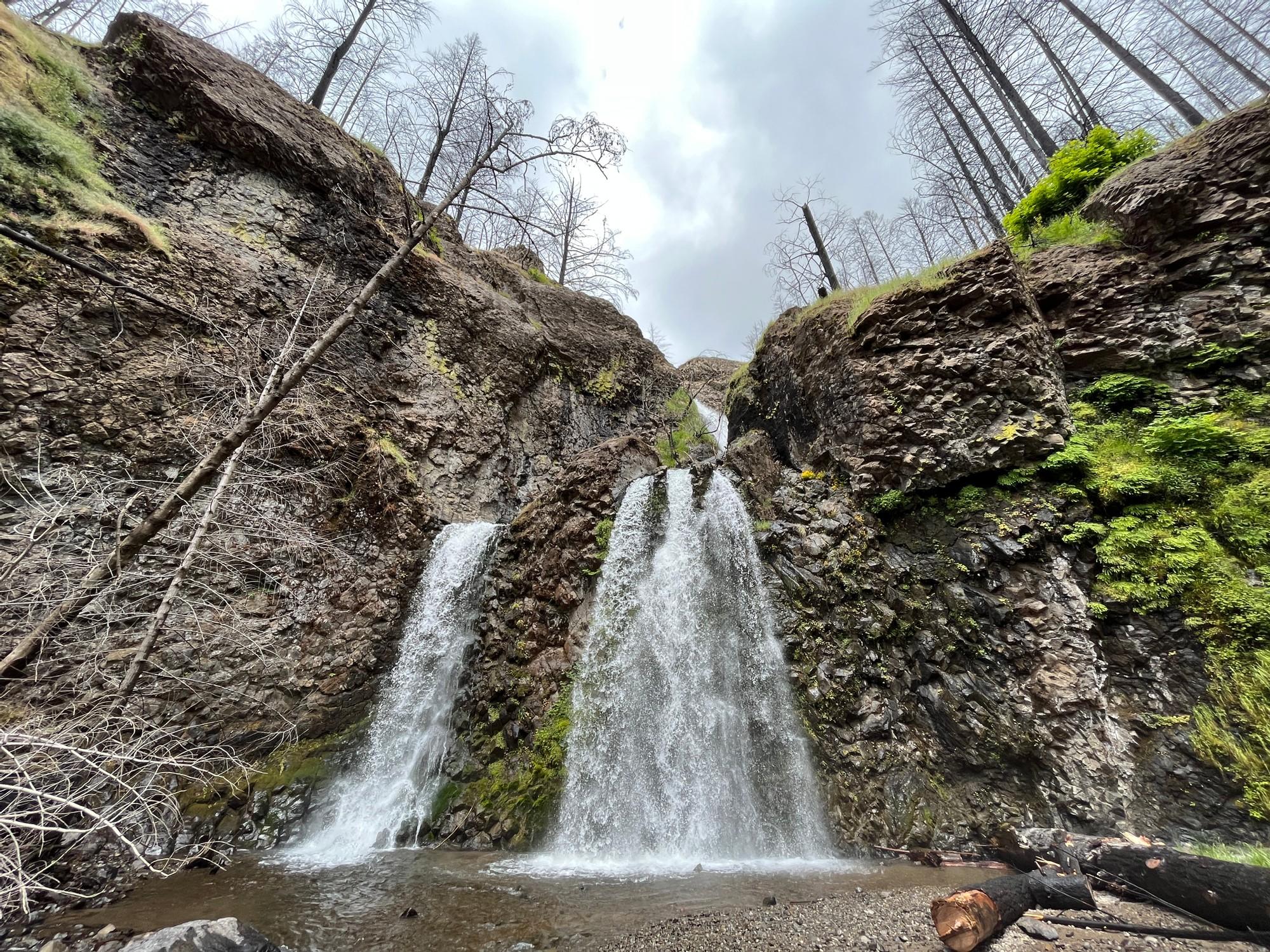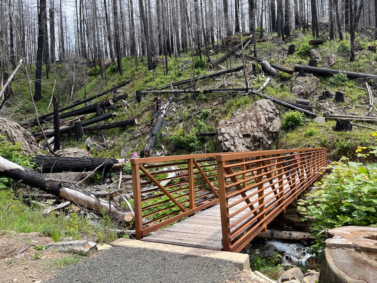 After being closed since 2020 due to the Archie Creek Fire, the Fall Creek Falls recreation trail has reopened! The trailhead is 16.5 miles east of Glide and the hike is .9 miles long. A new bridge was installed at the trailhead to get over the creek and lots of trail work was done by volunteers including the Motley Trail crew. The hike itself is definitely different, but it's still very beautiful. The fire burned through the area very intensely, leading to the loss of almost all vegetation and trees. Over the past few years lots of vegetation has grown back and there are lots of trees starting to regrow. The rock formations along the hike are much more visible now and some of them are very cool to look at. There is no bathroom at the trailhead at the moment, but there is one just west at Susan Creek Campground.