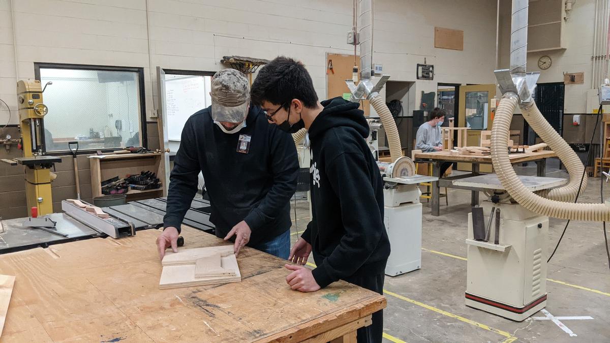 Some kids have grown up around woodworking and have a desire to further their skills in a woodshop class, while other find their way there simply to fill a class schedule. Every student in Gene Castillo’s woodshop classes at Roseburg High School, from Intro to Advanced Woodshop, is learning the skills they need to step into a construction site comfortably. Castillo just wrapped up his first full year teaching woodshop. He came from 37 years of working in the industry as a tile setter and contractor. He was working at Home Depot when he got a call from Roseburg Public Schools asking him to apply for the open woodshop teacher position. He said teaching was not on his radar. “Never would have thought it in a million years,” Castillo said. “If you would have asked me this last April, I would have said 'no way.' I'm still figuring out all my ways. I know there are teachers who are doing it. It's slow and I get frustrated because I'm a perfectionist and I'm not where I think I should be. I should be so much farther along, but then I've got comments from other people, students, and a variety of other people that my intro kids are so far above expectations. Most all of my kids run all of these tools.” The previous woodshop teacher focused on the cabinetry side of woodshop, while Castillo uses his background in contracting to teach skills in framing and finishing work. In his perfect setup, there would be another class and teacher for carpentry and construction technology. However, according to CTE Program Director Sheri Carson, Roseburg High school is still building up from the early 2000s when schools nationwide were cutting CTE programs. “Years ago, we had 13 CTE programs,” Carson said. “In the early 2000s when the push was ‘everyone's going to college,’ we lost six programs. We've slowly been building them back up. When they started cutting CTE programs, they cut the college portion that trained them. Educators pretty much have to come from their respective industries. Obviously, you can make more in industry than you can as a teacher, so they have to have the passion and want to do it. Then there are classes they have to take while they are building their program so they can get their teaching license.” RHS has increased its CTE program offerings to nine. Some of those original 13 won’t come back as they’ve been combined with another program or are irrelevant. There are other new programs that Carson is looking forward to adding and building, such as an EMT fire science program to the health occupations program. “I feel good about them,” Carson said. “They are strong programs. Most of them have been around now for quite a while, except for the very new ones, but the teachers are picking it up. They are trying to train 28 kids on how to do something when you've mainly worked with adults who already have an understanding or maybe you were training them one-on-one.” Assistant Principal Adam Blue is the administrator responsible for the CTE programs. Castillo said he leaned on Blue when he felt like he couldn’t handle the students. Blue said Castillo is doing a great job transferring from industry to education and preparing students to leave with skills, whether that’s in a community college, vocational training, four-year college, or straight into the workforce. “I'm a firm believer in options and open doors,” Blue said. “Develop some skills and understanding, because you never know what's going to happen down the road or what opportunities are going to open up to you. When you have those skills, you can take those opportunities that open up to you. That's what we try to provide.” The high school graduation rate for CTE concentrators is about 90% – higher than the national average, regardless of whether students pursue a related career or go to a four-year university according to the Oregon Department of Education. A high quality CTE program teaches more than the technical skills. The programs teach behaviors and mindsets necessary to succeed. Alexis Chaffee just completed her junior year and almost switched out of the class at the beginning, but she fell in love with making things. She looked forward to coming to school. Having her favorite class first period helped, she said. “This is my favorite class,” Chaffee said. “I just want to stay here all day. If you even have a thought about taking it, don't second-guess it, just do it. It's just a different experience. It's something kids can do that's hands-on and they can learn a whole bunch of new things.” Castillo admitted that there are significant differences between working in the industry and teaching. He can't fire a student who isn't giving full effort or doing his best work. He also has a bigger class than he ever had a crew of new employees. He doesn’t have the time to work with each individual student the way he wants to, so this semester, he had a handful of student aids to use the knowledge he’s given them to help others. “It helps me a ton,” Castillo said. “Now that they've been through the class, they can teach half of the class. Intro to woodshop is the biggest class and goes up to 28 kids. I have a minute and a half per kid per day. About eight and a half minutes a week is all the time I have for one-on-one instruction, to actually teach them to do something, which makes it extremely hard.” Emma Hargraves just finished her junior year and spent both semesters in Castillo’s classes. She took Intro to Woods with the previous woodshop teacher, and they didn’t click, so she didn’t come back. She was placed in the class at the beginning of the school year and she fell in love with woodworking again. For the spring semester, she was an aid in his fifth-period class. “It's one of the main reasons I show up to school every single day,” Hargraves said. “He went through the whole class, taught us how to use the machines, and made us each do a safety course. Now