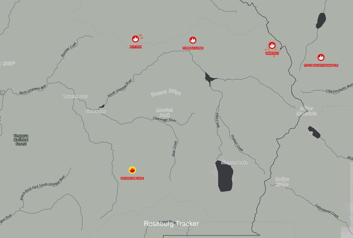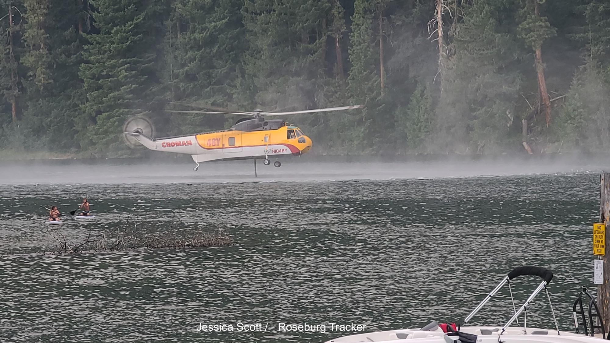 The Potter π₯ Fire 8 Miles NE of Clearwater, OR is a lightning-cause fire that is currently at 400 acres and 0% containment. Forebay 1 π₯: Approximately 4 acres just north of Lemolo 1 forebay The Windigo π₯ Fire 20 miles SW of La Pine, OR is 1,500 acres and 0% contained. There are evacuations in effect and road, trail, and area closures. Weather The heat dome continued to keep temperatures above average. Humidities improved slightly west of the Cascades to the 30 and 40% range, while east of the Cascades, humidities were primarily in the 15 to 20% range with some locations reporting single digits. Afternoon and evening thunderstorms produced 874 lightning strikes starting south of Grants Pass moving northeast towards Baker City. Thunderstorms produced light precipitation and gusty outflow winds. Temperatures will be a bit cooler today with gradual cooling continuing through Thursday as a couple of upper-level disturbances move through the region. Thunderstorms chances continue today across much of Oregon with lesser chances in eastern Washington, then become more restricted to central and eastern Oregon Tuesday and beyond. The east side of the Cascades remain at elevated potential with red flag conditions persisting through Tuesday. As increased cloud cover and wetter thunderstorms move in, fire danger will decrease, though holdover fires are possible. A Type 2 incident management team has been ordered to manage these fires in addition to the Potter Fire on the Willamette National Forest. Additional firefighting resources are also on order. A Temporary Flight Restriction (TFR) is in place over the fire areas. Via Northwest Coordination Center, US Forest Service Umpqua National Forest Photo by Jessica Scott of a Sikorsky S61a helicopter as it picked up water from Lemolo Lake to drop on the fires burning in the area. Her sons can be seen on paddle boards in the foreground.