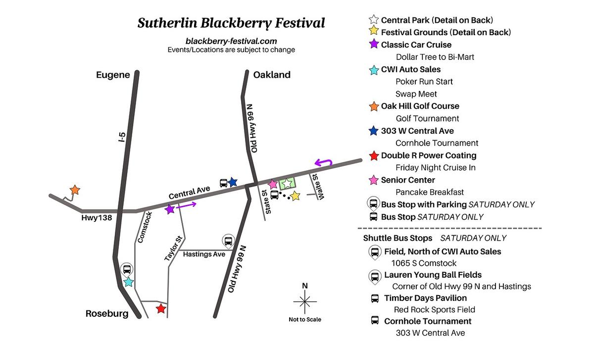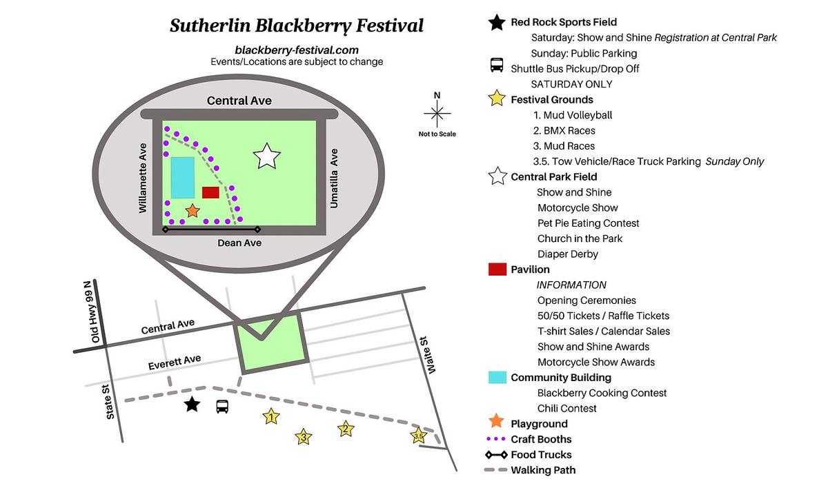The annual Blackberry Festival in Sutherlin started this morning at 8:30 a.m. with the annual golf tournament. The community event brings people together with classic cars and motorcycles, mud sports, tournaments backyard games, cooking contests, BMX bike races, music and dancing, pets, and mud races. This is the 34th anniversary of the festival. It will culminate with a raffle prize drawing on Monday. The top prize this year is a 1947 Ford Coupe. The car cruise will close down Central Avenue on Saturday night. Alternate routes can be found on the festival website listed below. Below are the events. All events are free to view, except for the mud races that cost $5 for people over 8 years old, and have varying costs for registration fees. If a location is not listed, it will be held at Central Park. For more information, visit www.blackberry-festival.com. Friday 5 p.m. Cruise in hosted by Double R Powder Coating at 1240 Page Ave. 7 p.m. Live Music by Garry Allyn Saturday 6-10 a.m. Blackberry Show and Shine 7-10 a.m. Pancake Breakfast at the Sutherlin Senior Center at 202 E Central Avenue. 7 a.m. to 5 p.m. Swap Meet at CWI Auto Sales at 11-1 S Comstock 7:30 a.m. Mud Volleyball registration 8 a.m. BMX registration 9 a.m. * Mud Volleyball * Cornhole Tournament Registration at 303 W Central Ave 10 a.m. * Opening Ceremonies Show and Shine begins and booths open * BMX Bike Races * Cornhole Tournament * Blackberry Cooking Contest at the community building 11 a.m. Blackberry Cooking Contest judging and awards 2:30 p.m. BMX Trophies and Prizes 4 p.m. Show and Shine awards 6:30-9:30 p.m. Classic Car Cruise on Central Avenue between Dollar Tree and Bi-Mart 7-9 p.m. Live music and dance at Lauren Young Tires Sunday 6-10:30 a.m. Mud Races registration 9 a.m. * Church Service in the Park by Abe Mantle * Swap Meet at CWI Auto Sales at 1101 S Comstock * Motorcycle Show Registration - ends at noon 10 a.m. Chili Cookoff in the community building 11 a.m. * Pet Pie Eating Contest * Mud Races Start * Chili judging and awards in the community building 12 p.m. Motorcycle Show with motor cards for people’s choice and kid’s choice at the pavilion 1 p.m. Diaper Derby 4:30 p.m. Motorcycle Show awards and raffle ticket drawing. *** Photos are from the Sutherlin Blackberry Festival website and Facebook page. The first photo is the winner of last year's raffle, Donna Wiser of Sutherlin who won the 1932 Ford.