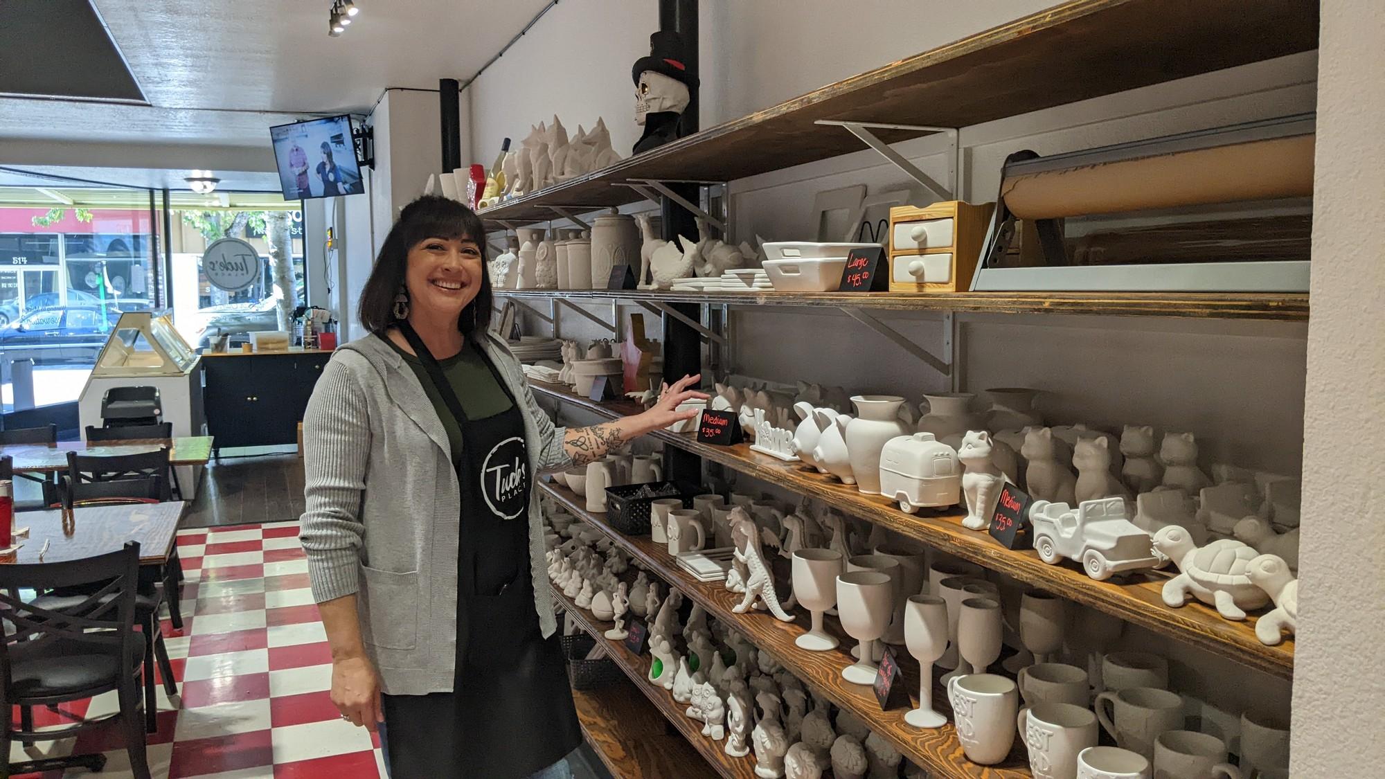 Tuck's Place provides a space for people of all ages to spend time together either painting ceramics, getting a bite to eat, something to drink or watching TV. The space opened today, Sept. 23. Tonya Ferber said the name comes from her nickname growing up and the idea has been something she's wanted for Roseburg for 12 years. She saw pottery painting places in Bend and wanted a place that could include food and drinks. "I don't want it to only be ceramic's based because I have so much here," Ferber said. "You could come in a paint, a family with small kids could let the kids paint and the dad can watch football and mom can have her mimosa. I don't know, just like an array of everything. You don't have a lot of things that little kids can do with their parents, You can only go to the movies and bowl so much. So I feel like this will be a fun addition to Roseburg for a family, especially in the winter coming up." Ferber taught herself how to fire the kiln in the back to finalize the painted pieces. Customers who paint a piece will get a call once it's been fired and they can pick it up later. Tuck's Place is open seven days a week, 10 a.m. to 7 p.m. at 509 SE Jackson St. Ferber said their busiest times today were around lunch and in the afternoon. It is all walk-ins, no reservations required.