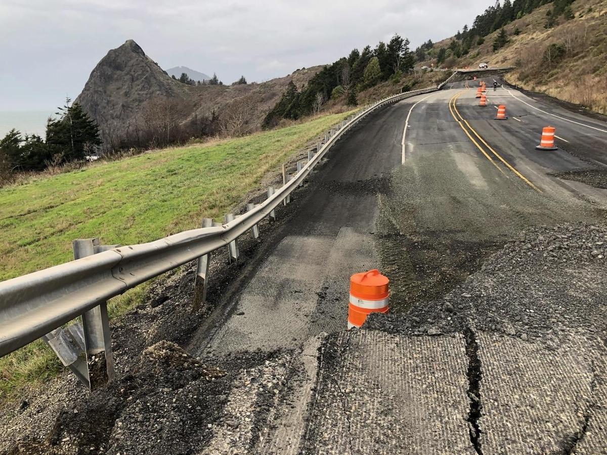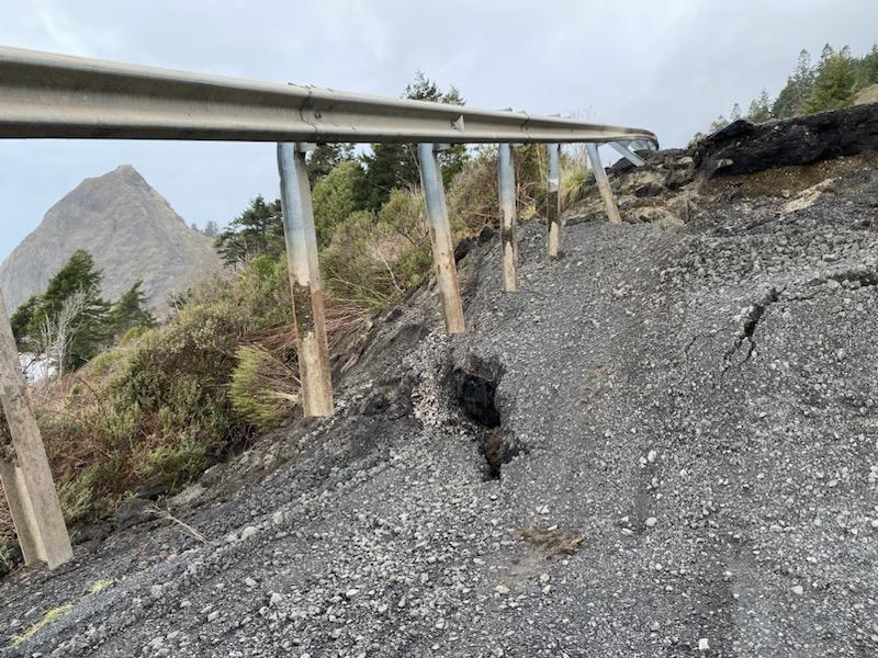 All lanes of Hwy 101 are closed 12 miles south of Port Orford at milepost 312 due to a landslide beneath the road. This will be a long closure according to Oregon Department of Transportation. For any travel along the coast, be aware of the closure and plan accordingly. For more info, go to tripcheck.com. The landslide caused a roughly 200-yard segment of highway to drop as much as 12 feet in some spots. U.S. 101 remains closed this afternoon near the landslide while geotechnical engineers from ODOT evaluate the scene and watch for additional movement according to an ODOT press release. There is not an estimate yet for when the highway may reopen. There is no local detour on this stretch of U.S. 101. This closure applies to emergency services as well. Around 3 a.m. Monday, a larger section of U.S. 101 sank about five feet, and ODOT closed the highway. U.S. 101 continued to drop through mid-morning, although movement has slowed as of noon. "What happens next is dependent on our surveys and also the weather," ODOT Public Affairs Specialist Matt Noble said. "Our engineers tell us the slide has slowed down significantly over the last 24 hours, which is good news. If it stays like this, we’ll be able to start building a temporary lane through the collapsed area with rock and gravel. Our contractor is already staging materials and equipment at the site in preparation. The wild card is the upcoming rain in the forecast the next few days. More rain may destabilize the slope more, which could make it slide more, and that would hinder or halt the temporary lane work." Crews first noticed landslide activity on Jan. 2, when large cracks formed in the pavement. The cracks were patched, but by Friday, a sunken hole had formed in the northbound lanes, prompting a lane closure and 24-hour flagging for traveler safety. Active landslides are common on the south coast. ODOT monitors multiple active landslides between Port Orford and Ophir. This active landslide, known as the “Arizona Slide,” has had events like this since the 1980s. The last big Arizona Slide event occurred in 1993 and closed U.S. 101 for over a week. "We did not have an indication that this landslide would happen before it did," Noble said. "The Arizona Slide is a well-known active landslide area that we monitor, but sudden landslides like the one south of Port Orford are difficult to predict. Our work is focused on reducing how often landslides happen, and having plans in place for when they do.