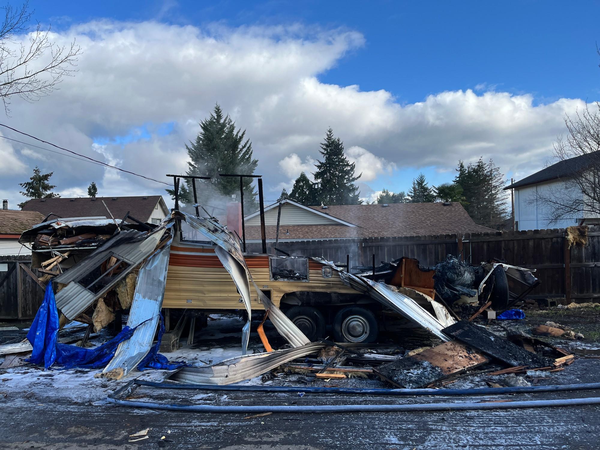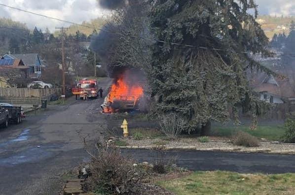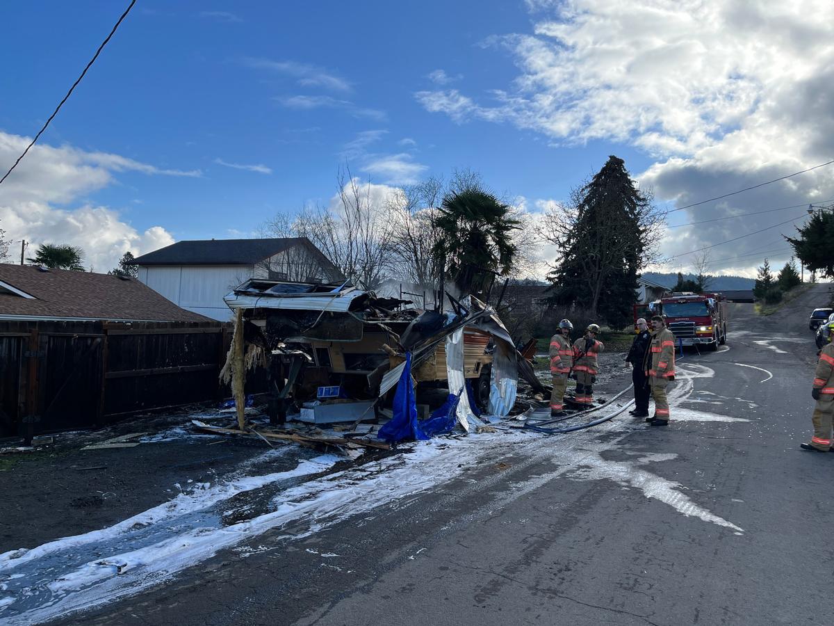 Camping Trailer Catches Fire, Explodes in Roseburg Neighborhood