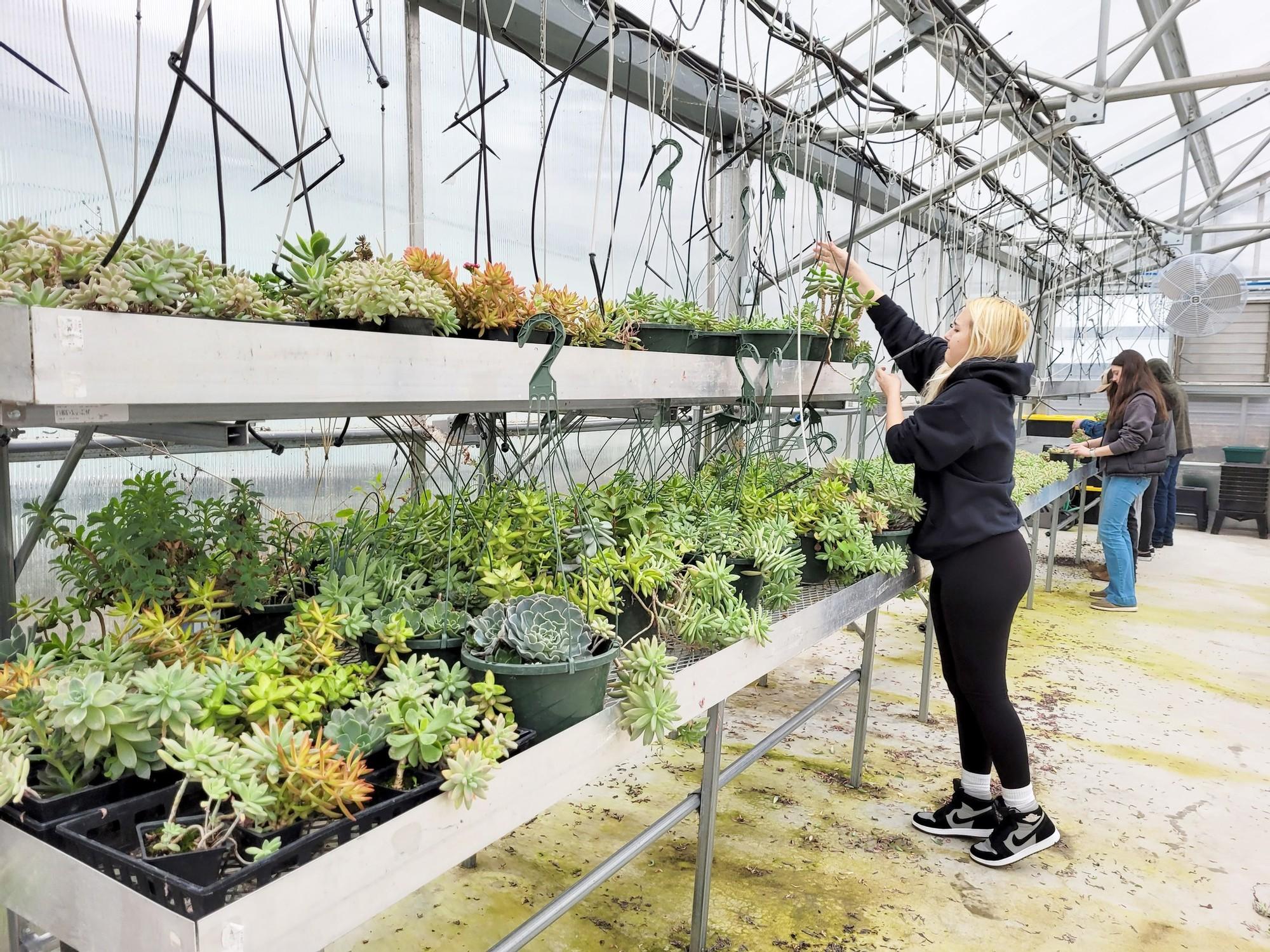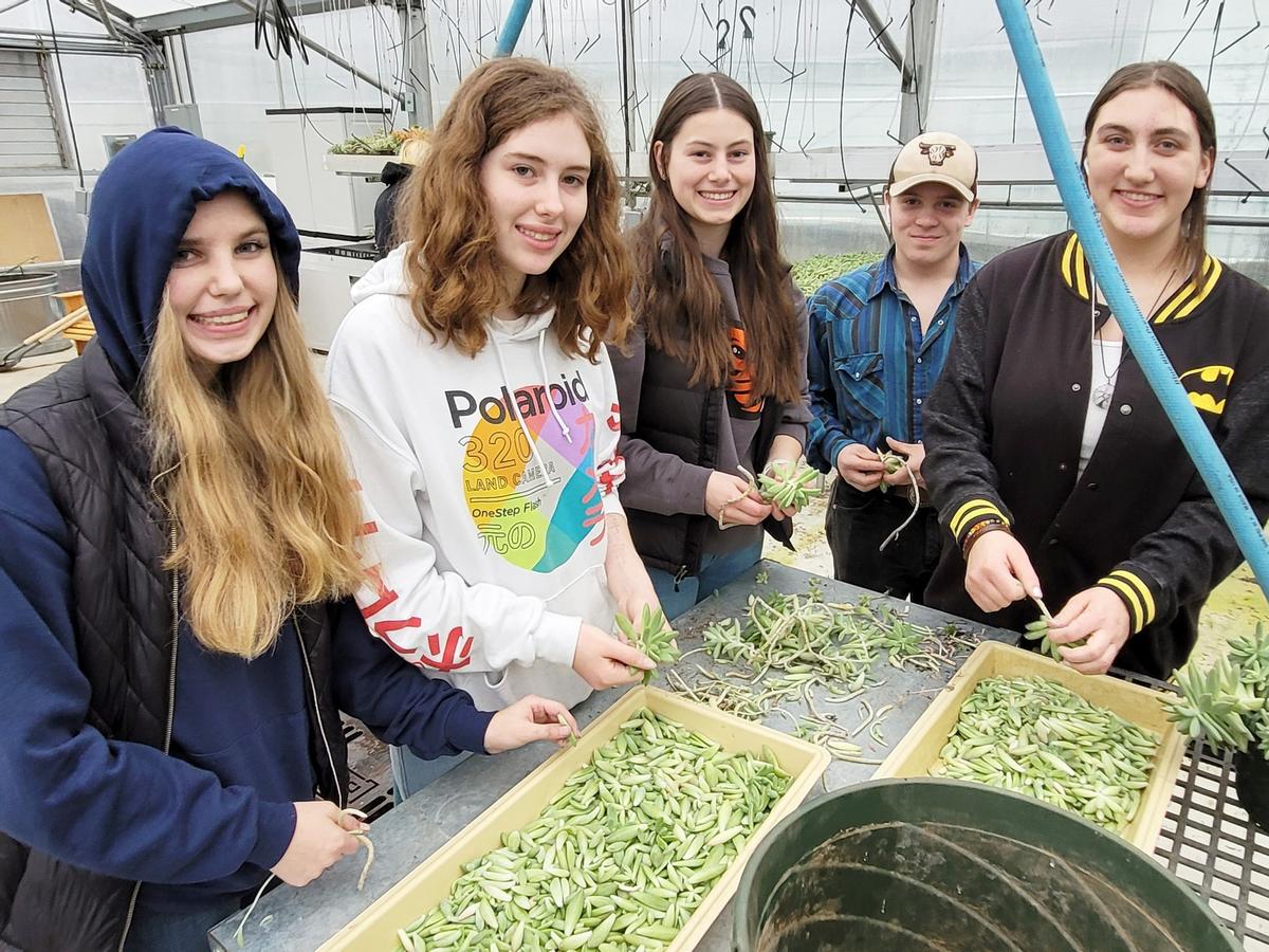 Trimming stems, harvesting leaves, repotting, weeding and transporting are all part of the succulent regeneration process. Propagated from parent plants, these baby succulents are getting ready for the Spring Plant Sale. 🌱 Roseburg High School students of Cailey Powell's agriculture and science class learn about growing and harvesting crops, raising animals or livestock, and providing resources for the world population. They focus on understanding plant, soil and animal sciences, such as understanding where food comes from and how it’s produced. “My favorite part of this class is being able to do so many hands-on experiences,” said senior Makaela Carter. “Today, we are working in the green house and earlier this year we were able to do dissections on animal uterine tracks. It’s really cool getting to perform the activities that we’re learning about.” Powell teaches students about how agriculture provides the food and raw materials that humans need to survive. The field also helps create many career options such as veterinarians, foresters, geneticists, nutritionists, farmers, teachers, and many others. “Agriculture education is essential to teach others the importance of agriculture and understand what agriculture looks like historically, currently, and into the future,” Powell said. Students who enroll in agricultural science have the opportunity to join FFA (formally known as Future Farmers of America). FFA gives students the key elements to achieve their personal and professional goals by helping them develop premier leadership skills, promote personal growth, and support career success. The plant sale will be happening in April but exact dates have not been set yet. Via Roseburg Public Schools