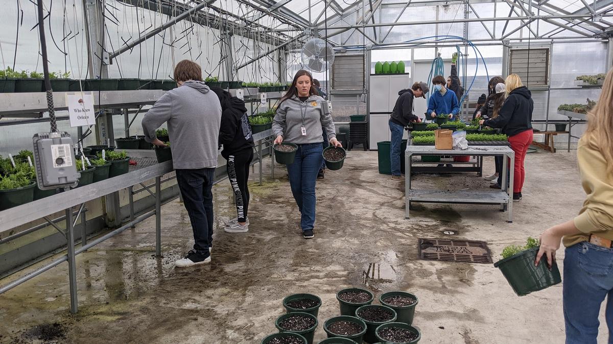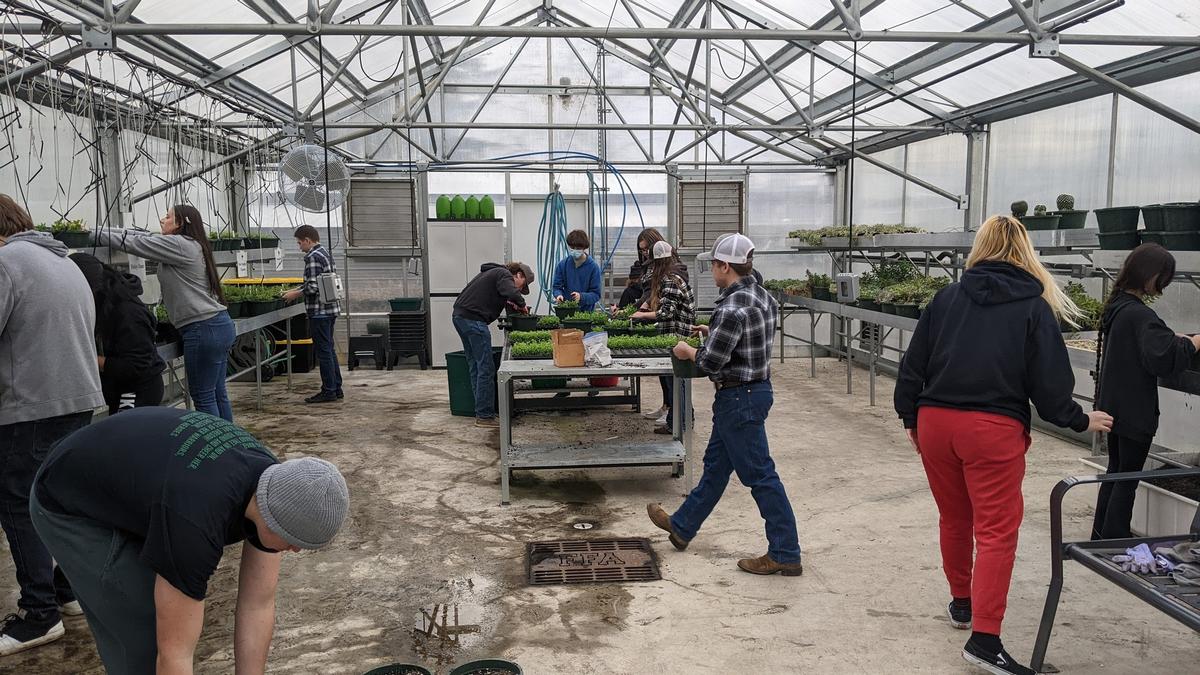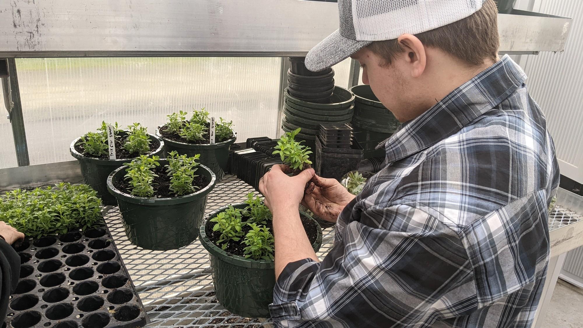 Last week, a group of young future foresters, gardeners, and lawyers spread out in the greenhouse at Roseburg High School, all working together over pots of flowers. It’s all part of Cailey Powell’s Agricultural Sciences 2 class where they prepared 200 hanging baskets for the annual plant sale hosted by the Ag program. Makaela Carter has been in the ag program since her freshman year and has exhausted all of her options in the program as a senior. But it’s so important to her, that she is doing an independent study and sits in on Cailey’s Ag 2 class. She studies the business of agriculture and the impacts the legal system has on the industry. “I take ag because agriculture is the staple of the world,” Carter said. “It’s why we are here today. I really enjoy getting to do these hands-on experiences with plants and animal science. Agriculture doesn’t just mean farmers. It’s so many other businesses and industries that people aren’t even aware of. Everything in the world can somehow relate back to agriculture because agriculture helped it get there. We would not be where we are in the world without agriculture.” She has her next steps planned out with the intent to practice agricultural law. She participates in debate-type competitions and firmly believes in the importance of understanding where food comes from and how it impacts the rest of society. “Agriculture is an often overlooked topic, yet it surrounds each and every one of us each day: food, fiber, and natural resources,” Powell said. “The Agriculture industry is just as important, if not more, than it has been historically. Our global population has surpassed 8 billion people, yet we are producing products on less and less land. The Agriculture industry is responsible for caring for the human populace and it provides numerous job opportunities; most jobs have a connection to the agriculture industry.” Powell is in her second year as the Agriculture teacher and FFA Advisor at RHS, but she went through the program herself, was a part of FFA, raised animals for the county fair, and grew up on a ranch. She lives and breaths agricultural sciences. Despite circulating through three teachers in her four years, she loved the program and continued to invest in it, unaware she would become the teacher for the program later. Hunter Ponton and Ysabella Mills-Price are paired off transplanting plugs into hanging pots together. The senior and junior respectively both want to be foresters when they join the workforce. Ponton checks in with Mills-Price to know if he’s pulling out the plugs correctly. “I just grew to love it more and more,” Ponton said. “Powell is a really cool teacher. You don't need to grow up with a rural background to be part of the FFA.” Ponton wasn’t going to take Ag classes when he got to high school. Classes and clubs were over Zoom still. Through conversations with friends, he was convinced that he would like an Ag class. Ysabella knew she wanted to do Ag to add to her gardening skills and prepare her for a forestry-related job. “I would rather be outside doing something,” Mills-Price said. “I like hiking and I like being outside. I decided I’ll take ag and use that to get into forestry and go from there. Agriculture is not just about animals. There is a lot of plant stuff. It’s not just for ‘hillbillies,’ there’s more to it. It’s good even if you want a garden of your own.” Seed germination, gardening, research, business planning, capital investment management, flexibility, project management, and motor skills are all things students learn in Ag 2. Powell is invested in growing the program even more. Powell took this class when she went to RHS and really loves working with her students and teaching the value of the agriculture industry. “Providing Agriculture Science classes in school provides students the opportunity to learn more about agriculture, find deeper value in their connection to agriculture, and develop amazing skills along the way such as premier leadership, professional growth, and career success,” Powell said. “Agriculture classes are not specific to rural-raised individuals; Agriculture Education is available for each and every student that has an interest or passion in agriculture production: animals, plants, soils, forestry, natural resources, etc. It's not as simple as teaching them where their food comes from, but developing a deeper understanding of the industry that provides for us each and every day.” In Oregon, all students enrolled in an Agriculture class are registered as members of the National FFA Organization, previously known as Future Farmers of America. Powell is clear on the difference between active FFA members and Ag students but is also intent on motivating all of them to be engaged in their learning and to be respectful of each other and the earth that provides for them. “I truly enjoyed taking agricultural science classes because of their emphasis on plant and animal sciences and the hands-on nature of most activities,” Powell said. “Having a deep pride in this program has made me a better educator and gives me the motivation to stay here as long as I can to help create a sustainable program. Since I am an alumnus of the Agriculture Science program and the Roseburg FFA Chapter, I know the potential it has, and I hope to be the cornerstone in its forward progress and growth. Over the years, I have begun to make the program my own and develop a deeper relationship with my students and colleagues. Since being a teacher, I have begun to expand the Agriculture Science, heavily promote it to the community, and recruit and retain larger numbers of students within the Roseburg FFA Chapter.” All of Powell’s Ag 2 students are kind, quick to listen, and hard workers. In about 30 minutes, they diligently dug holes and gently transferred four plugs into each of the hanging baskets. They started with 800 plugs and fin