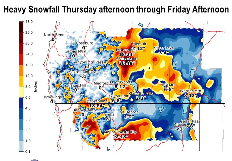 Wow, Crater Lake could receive up to 4 feet of new snow by Friday afternoon!