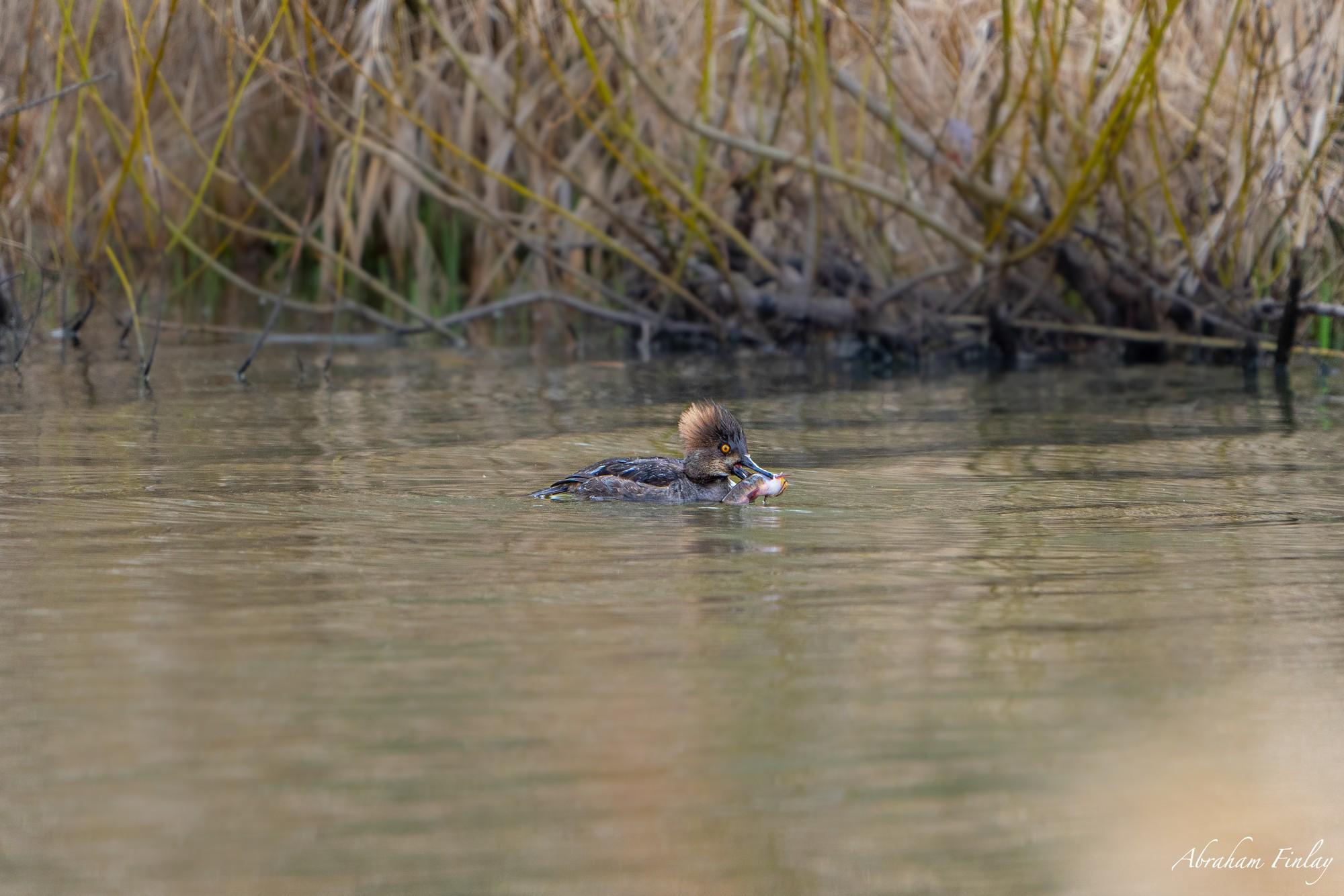 This female Hooded Merganser was busy fishing in Woodruff Pond next to Fords Pond a few days ago. The fish was a bit too big for it and it was having some trouble swallowing it!