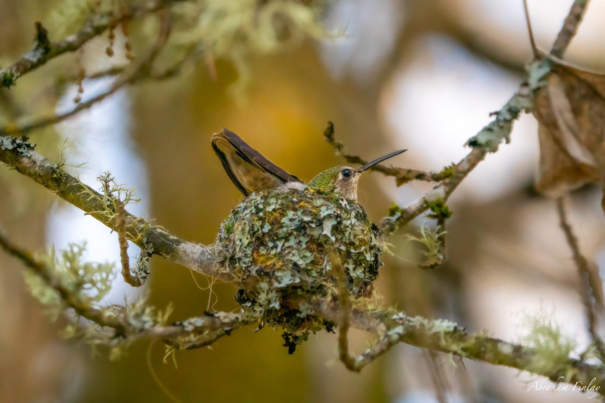 I was looking for a roosting Screech Owl yesterday afternoon with Matthew Hunter. We didn’t find the owl but towards the end of our search, we came across this nesting Anna's hummingbird! Hummingbird nests are only about 1 by 1 1/2 inches in size, and their eggs are slightly larger than a jellybean!