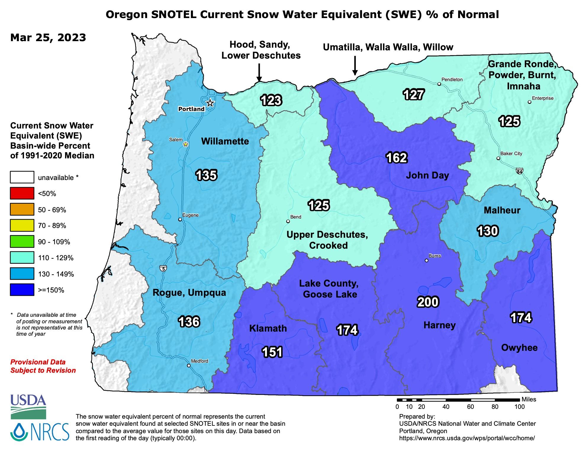 The current snow water equivalent for the Umpqua district is at 136% of normal! If this holds up, it will be great for our forests and rivers this summer! ๐