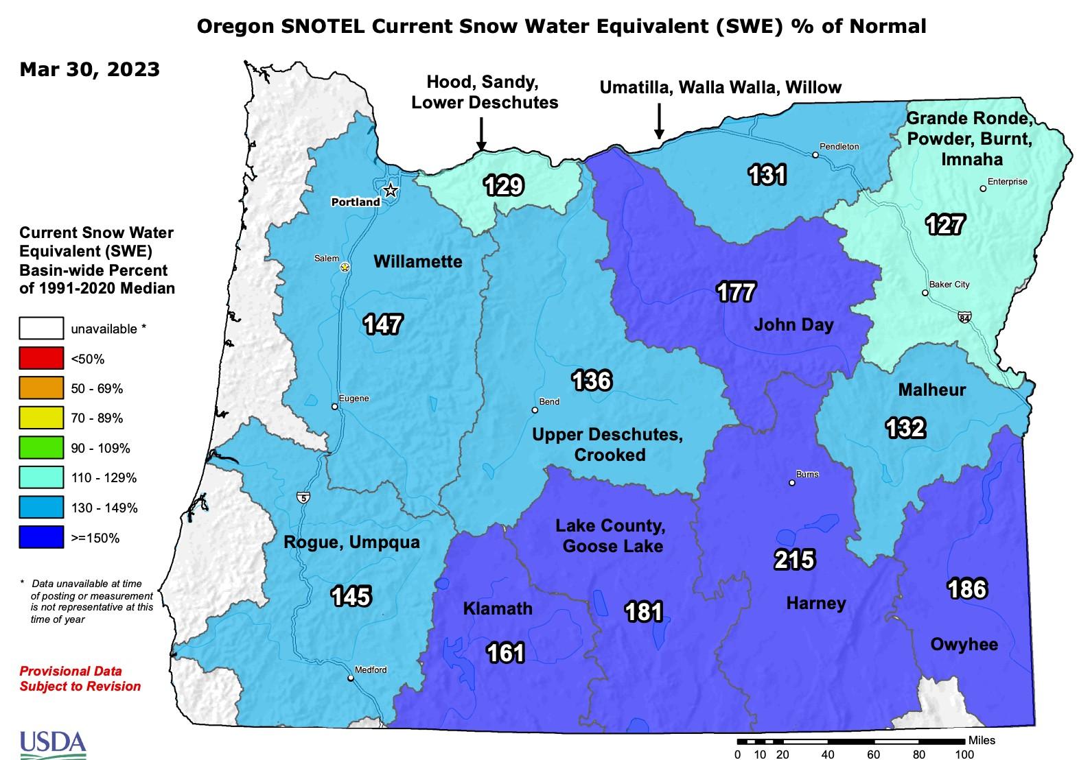A beautiful sight! The Umpqua district now has snow water equivalent at 145% of normal! Another 30 inches of snow could fall at higher elevations over the weekend!