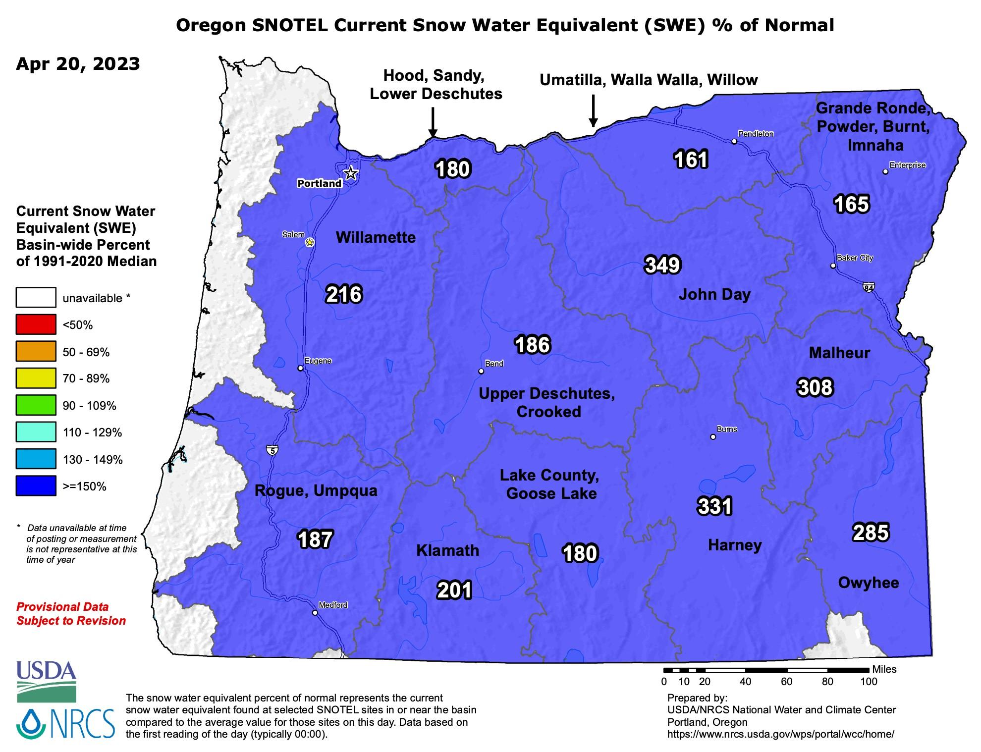 The Umpqua District has recorded a snow water equivalent (SWE) of 187% as of April 20, 2023. The SWE is a key metric used to measure the amount of water contained within the snowpack, which is crucial for predicting water supply and flood risk. This striking figure has drawn attention to the possible implications of having a significantly higher than normal SWE. The elevated SWE percentage is a blessing for the Umpqua District. A higher SWE translates to a greater water supply, which can prove beneficial for agriculture, hydropower generation, and general water availability in the region. Additionally, it can help alleviate drought conditions and maintain healthy ecosystems.