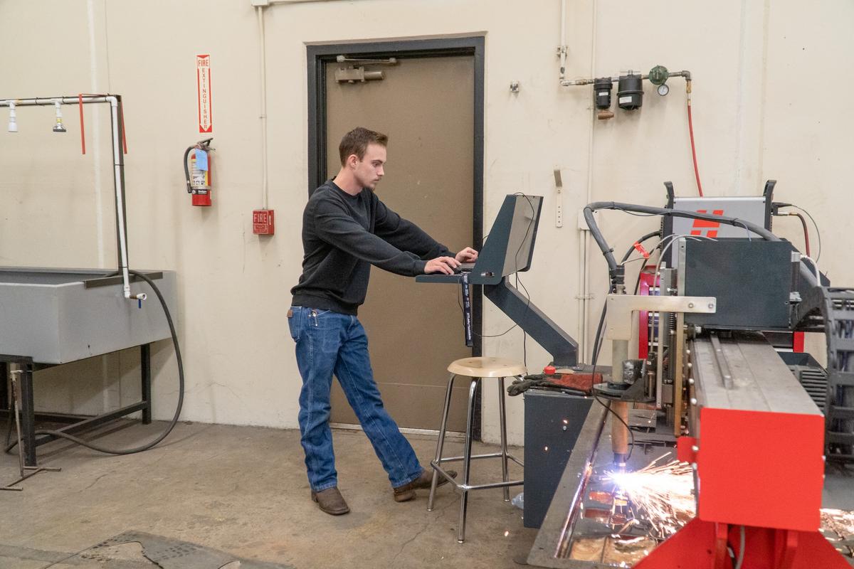 When Higen Spani, a senior at Roseburg High School, realized he didn't want to spend his life confined to an office, he found his true passion in the school's CTE (trade) programs. Now, with several welding certifications under his belt and an internship at Con Vey in Roseburg, Spani is poised to enter a high-demand career in welding. A native of Roseburg, Spani's family moved away during his early childhood and returned when he was in the 4th grade. Upon entering Roseburg High School as a freshman, he was drawn to the CTE trade programs and enrolled in an automotive course to indulge his love for working with his hands. By his sophomore year, he had discovered the perfect blend of drafting and welding, which allowed him to bring his digital designs to life. Spani fondly recalls a deer hoist he made for his grandfather, a project that helped hone his welding skills. Through three years of Roseburg High's welding program, Spani earned his flat welding certification, as well as certifications in stick, hard wire, and dual shield, all of which he achieved as part of his high school education. “Getting the opportunity to learn these trades is amazing. We have a great facility here at RHS.” Spani said. Spani also had some advice for younger kids thinking about their career. “Try lots of areas, trades and different career paths as early as possible. There’s so many options and opportunities. Take advantage of them.” Aaron Eubank, the Roseburg High School welding instructor, has had Spani as a student since Eubank arrived at RHS in January of 2022. He said he loves seeing students like Spani succeed. “I really pour my heart and soul into these students, especially those who take it really seriously. I want to make them as successful as possible.” Eubank says the opportunities in the welding industry are everywhere. He has several other seniors that will very likely go into welding as a career he said. “Opportunities are endless. It’s a huge industry and the demand for workers is just out the door.” Eubank said. Eubank has also really appreciated the support from administration at RHS and the district for the welding program. He’s hoping to expand the welding program and even get an assistant at some point. In 39 days, Spani will graduate from Roseburg High High School. He will then work out the rest of his internship at Con Vey. After that, Spani has enlisted in the Army for 91 Echo as an allied trade specialist. He will be enlisting as a fabricator and is looking forward to exploring many of the other areas of the welding trade. He leaves for South Carolina on August 7th. His emotions are a mixed. “It’s exciting and a bit scary. Exciting this chapter is almost over, but the unknown ahead is always scary.” Spani also reflected on his time at RHS coming to a close. “Being a senior, I’m going to miss it. There are a lot of great people here. It will be bittersweet.” Photos by Ryan Finlay Photo 1 - Higen Spanni operating a CNC plasma cutting machine Photo 2 - Aaron Eubank working with Spanni and another student Photo 3 - Higen Spanni Photo 4 - The deer hoist Higen built for his grandfather (photo courtesy of Higen Spanni) Photo 5 - Other Roseburg High School welding students at work