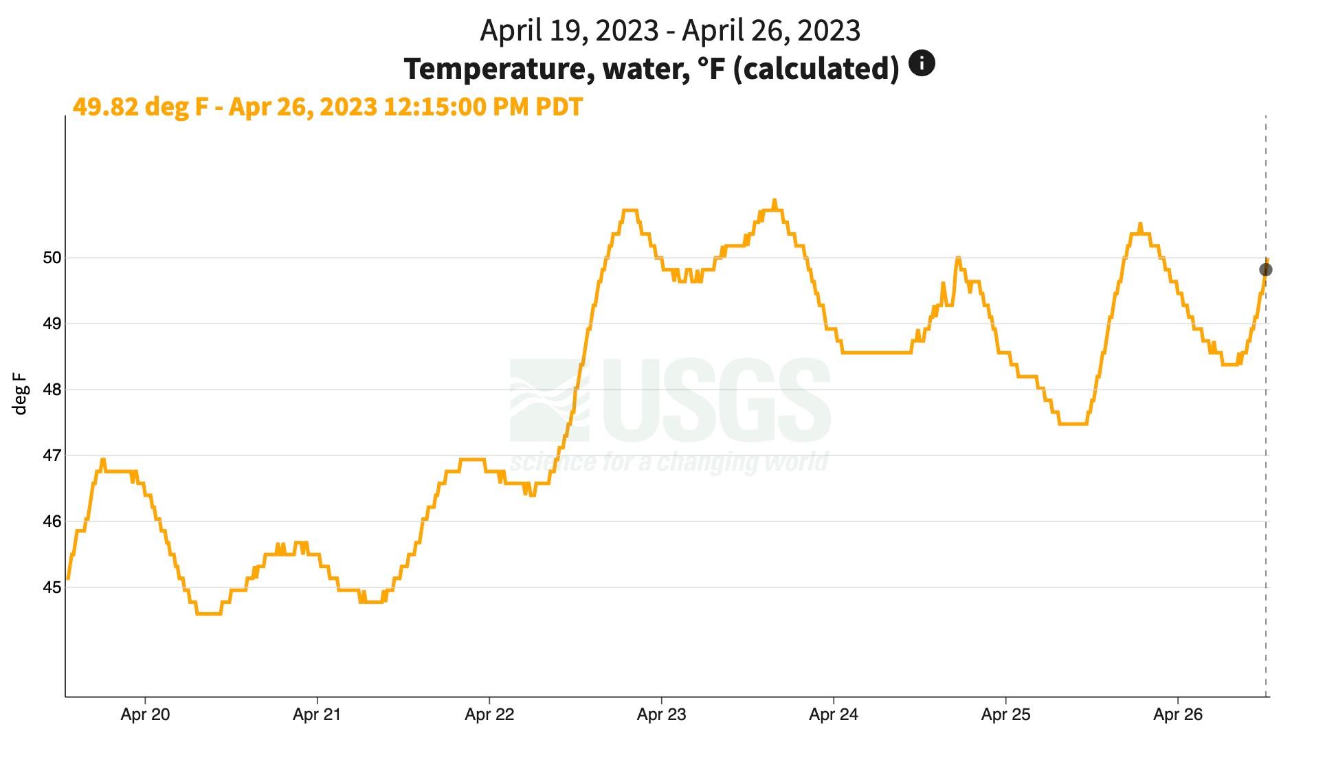 Warm air, cold water! Remember that our local rivers are still very cold, so be careful around the water over the next four days. North Umpqua River is currently around 49 degrees. Air temps look like they will peak on Friday at 87 degrees or so, before cooling off quite a bit starting on Sunday into next week.