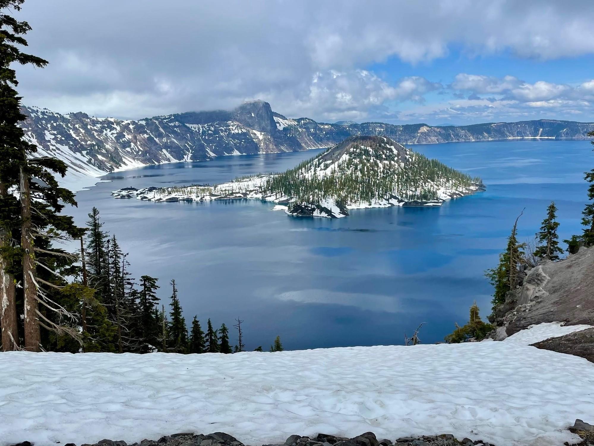 If you're planning a trip to Crater Lake National Park, here's some advice to help make your visit smoother and more enjoyable. First, buy your entry pass before you arrive. You can do this at www.recreation.gov. To avoid long lines at the park entrance on Highway 62 (note that the North Entrance is closed), try to arrive before 10 am or after 3 pm. You can drive up to Rim Village and a mile beyond to Discovery Point. But remember, West Rim Drive past Wizard Island Overlook is closed every day from 7:30 AM to 4:00 PM. This is for snowplowing work, and no one can walk, ski, or snowshoe in this area during these hours. Stay away from any heavy equipment for your safety. Parking can be tricky. If you go farther into Rim Village, you might find a spot more easily. For those hoping to hike, know that the Garfield Peak trail is closed. Other summer hiking trails are also not accessible right now because of snow. It’s important thing to remember is to be patient, respectful, and kind to the park and to others. Photo by Audrey Golden on May 21, 2023.