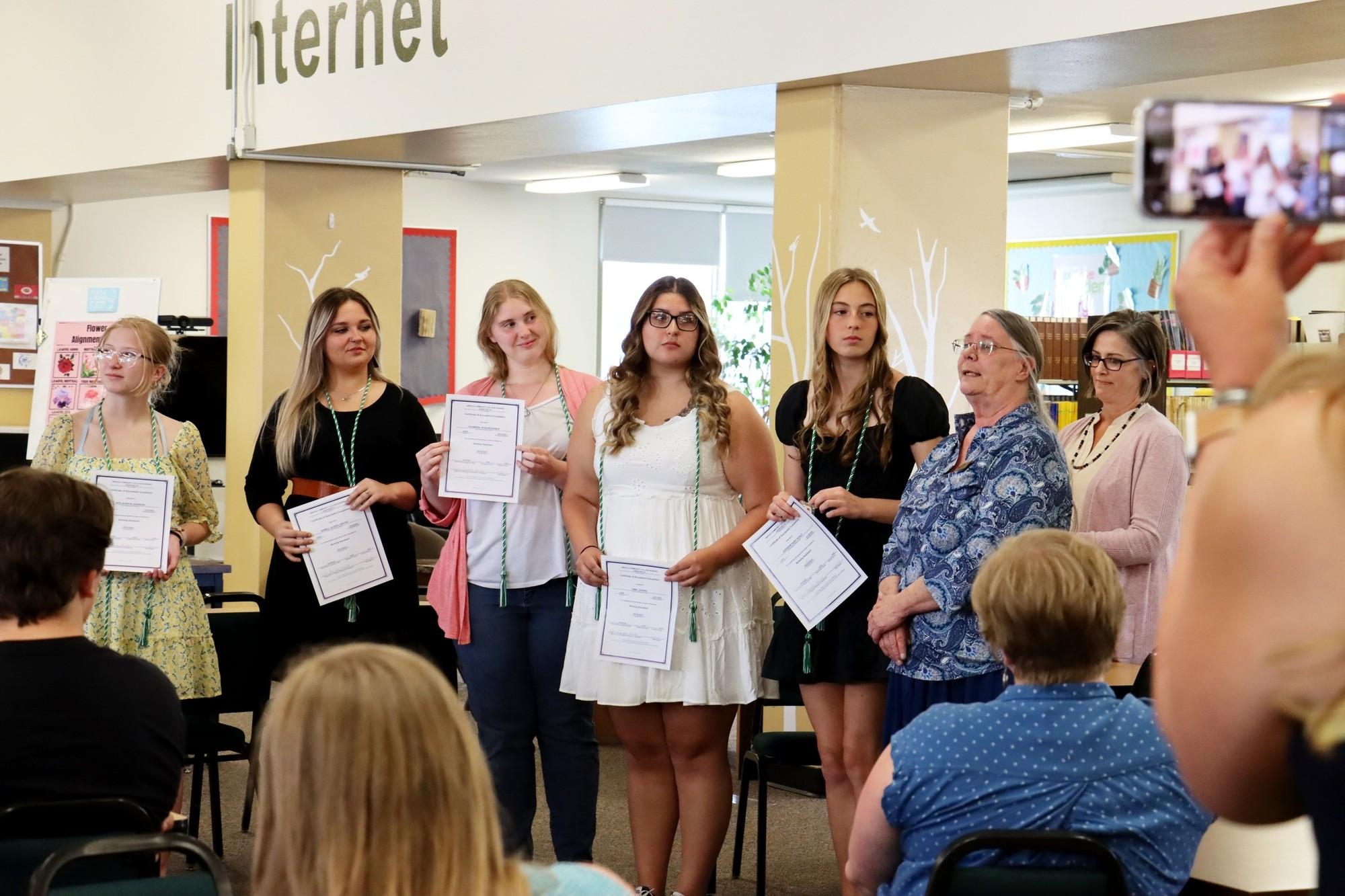 Five Roseburg High School students have finished a special nursing training program. The students - Keelin Johnson, Sorrell Carter, Kasmara Boehnen, Amia Juarez, and Addison Scalf - got hands-on experiences like taking blood pressure, helping people eat in bed, moving with a belt, and changing people between beds and wheelchairs. This is part of the Nursing Assistant Level One Program at Roseburg High School. It's the only one of its kind in Douglas County, and only a few others like it exist in Oregon. This course is offered to juniors and seniors in the dual enrollment program with Umpqua Community College. Senior Sorrell Carter recommends the course to anyone wanting to join the medical field, mentioning the great teacher who makes learning fun. Junior Addison Scalf finds the course and the clinicals engaging and revealing about their career choices. On completing the program, students earn nine college credits which will help them enter Umpqua Community College’s Nursing Program. Students can also start work straight after school as a certified nursing assistant. The course, approved by the Oregon State Board of Nursing, involves over 164 hours of training. The training includes basic bedside nursing skills, basic restorative skills, mental health and social service needs, personal care skills, and knowledge of clients’ rights. Students get to practice these skills at school and during nights and weekends at care facilities. According to instructor Jan Dawson, all students who have finished this course have found jobs and gone on to the Nursing Program. She praises the personal growth and teamwork she sees in her students. "The growth they get in this class is tremendous," Dawson said. Congratulations to the five students on their achievement!