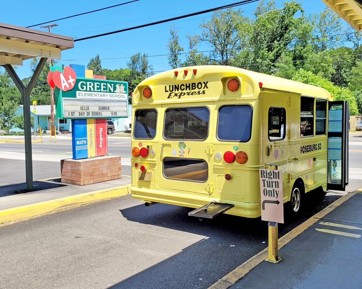 Roseburg School District will offer free meals to children at Lunchbox Express sites and school cafeterias throughout June, July and August. A stop at Green Elementary School has also been added to the schedule. The meals are available to all children and youth 18 years old and younger. Meals will be served Mondays through Fridays, June 12 to Aug. 11 (except July 3-4) at the following times and Lunchbox Express sites: - 11 to 11:20 a.m. at Saddle Butte Mobile Manor (222 Saddle Butte Lane) - 11:30 to 11:45 a.m. at Creekside Family Church (731 Newton Creek Road) - 12:05 to 12:25 p.m. at Eastwood Park (2823 SE Douglas Ave.) - 12:35 to 12:55 p.m. at Thompson Park (1448 SE Thompson St.) - 1:10 to 1:25 p.m. at Stewart Park (1700 W Stewart Park Drive) - NEW! 1:35 to 1:55 p.m. at Green Elementary School (4498 SW Carnes Road) In addition, meals will be served at the following times and school sites: From July 5-31 (Mondays through Thursdays) at the Fir Grove School cafeteria. - 8 to 8:30 a.m. (breakfast) - 11 a.m. to noon (lunch) From July 5 to Aug. 11 (Mondays through Thursdays) at the Winchester Elementary School cafeteria. - 8 to 8:30 a.m. (breakfast) - 11:15 a.m. to 12:15 p.m. (lunch) From July 5 to Aug. 11 (Mondays through Thursdays) at the Roseburg High School cafeteria. - 7:45 to 8:30 a.m. (breakfast) - 11 a.m. to noon (lunch) Site rules include: - Each child receives a meal that meets or exceeds USDA meal pattern requirements. - Meals are available to all children and teens 18 years and younger. - All meals must be eaten on site. - Adults may not pick up meals for students. - Adults may not eat any part of a child’s meal. Meal sites and times subject to change. For the latest information, please visit www.roseburg.k12.or.us. This summer food program is a part of the USDA Food and Nutrition Service and is administered by the Oregon Department of Education Child Nutrition Programs. For more information, call (541) 440-4023.