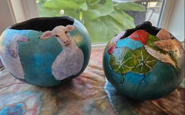 Hello art lovers, In case you haven’t noticed, there are a lot of good things going on in downtown Roseburg these days. With new shops and restaurants opening and summer in full swing, it’s a great time to come down and check out our three featured artists for the month of July! Our north window features Jani & Jim Brown. They are both founding members of Gallery Northwest. Jani is an amazing artist who works in many media. She is accomplished in pastels, watercolors, woodcarving, jewelry, and textiles. Her featured artwork this month includes more than a dozen decorative gourd pieces embellished with wood burning, oils, acrylics, alcohol inks, and dyes. These pieces must be seen to be believed. Jani’s husband Jim, is an equally diverse artist. He's not only an accomplished jazz musician, but works in a host of modalities including: wood, metal, textiles, jewelry and printmaking. His displayed pieces include fascinating mono prints of tree rings using Akua intaglio ink. These are true and artistic representations of nature. Also on display are a few of Jim’s unique metal-orb chandeliers and a beautiful trumpet lamp. Genell Garret’s work is featured in our south window. Genell has been creating art for five decades and has been a Gallery Northwest member for 8 years. She is an award-winning pastel artist and is equally accomplished in oils. Her featured pieces this month consist of beautiful western landscapes and wildlife studies depicting birds, bighorn sheep, horses, elk, and buffalo. Take this opportunity to not only enjoy these window displays but also please venture into the gallery to see more of the beautiful art created by these and the many other talented artists at Gallery Northwest.