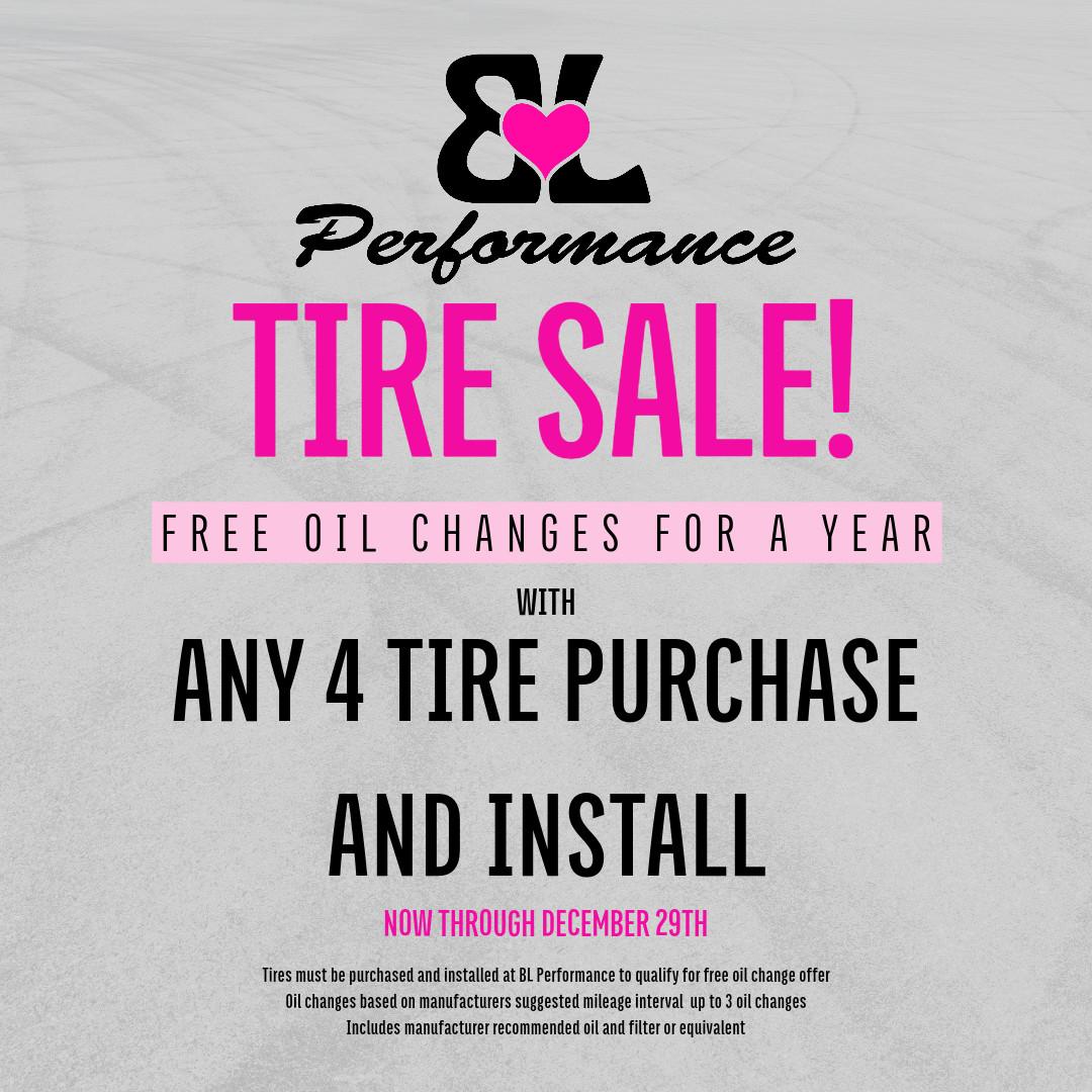 BL Performance in Roseburg is offering free oil changes for a year with any 4 tire purchase through the end of December!