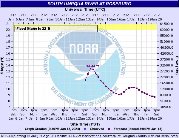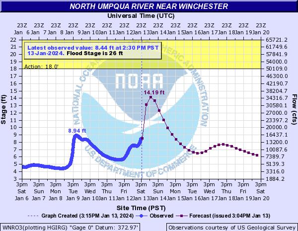 Newton Creek here in Roseburg is looking pretty full late this afternoon! Our local creeks and rivers should peak sometime late tonight before starting to drop tomorrow.