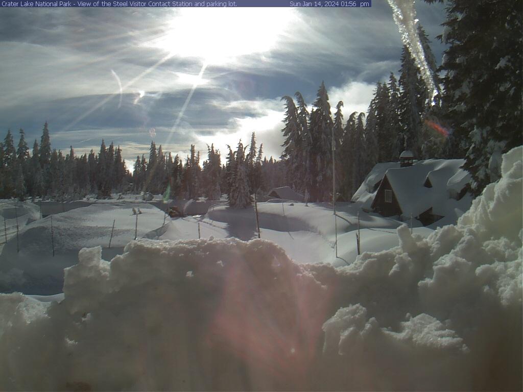 The power is back on at Crater Lake and the sun is out and it looks like they got a lot of new snow! Official numbers will likely be out tomorrow but it looks like they got several more feet of snow. On the 10th, there were 69 inches. I'm going to guess there will be close to 110 inches at the next measurement. Here is the latest from Crater Lake rangers: "The park is digging out from 3 major snowstorms in the past week. At this time the road from the entrance station on Highway 62 to park headquarters and Rim Village is CLOSED. The road to park headquarters is projected to open sometime on Monday, 1/15 and the road to Rim Village sometime on Tuesday, 1/16. Even once the roads are open, please use caution when driving or walking as conditions are very icy and slippery. All Oregon chain laws apply."