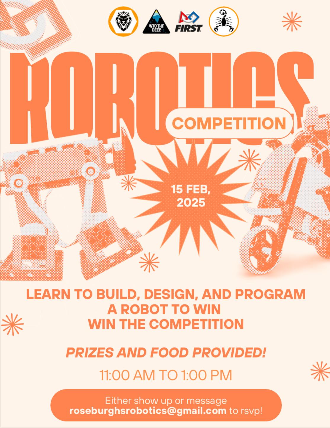 Robotic event tomorrow at the roseburg public library. Open to public of all ages, but ideally elementary and middle school students. Free food and snacks! 11-1