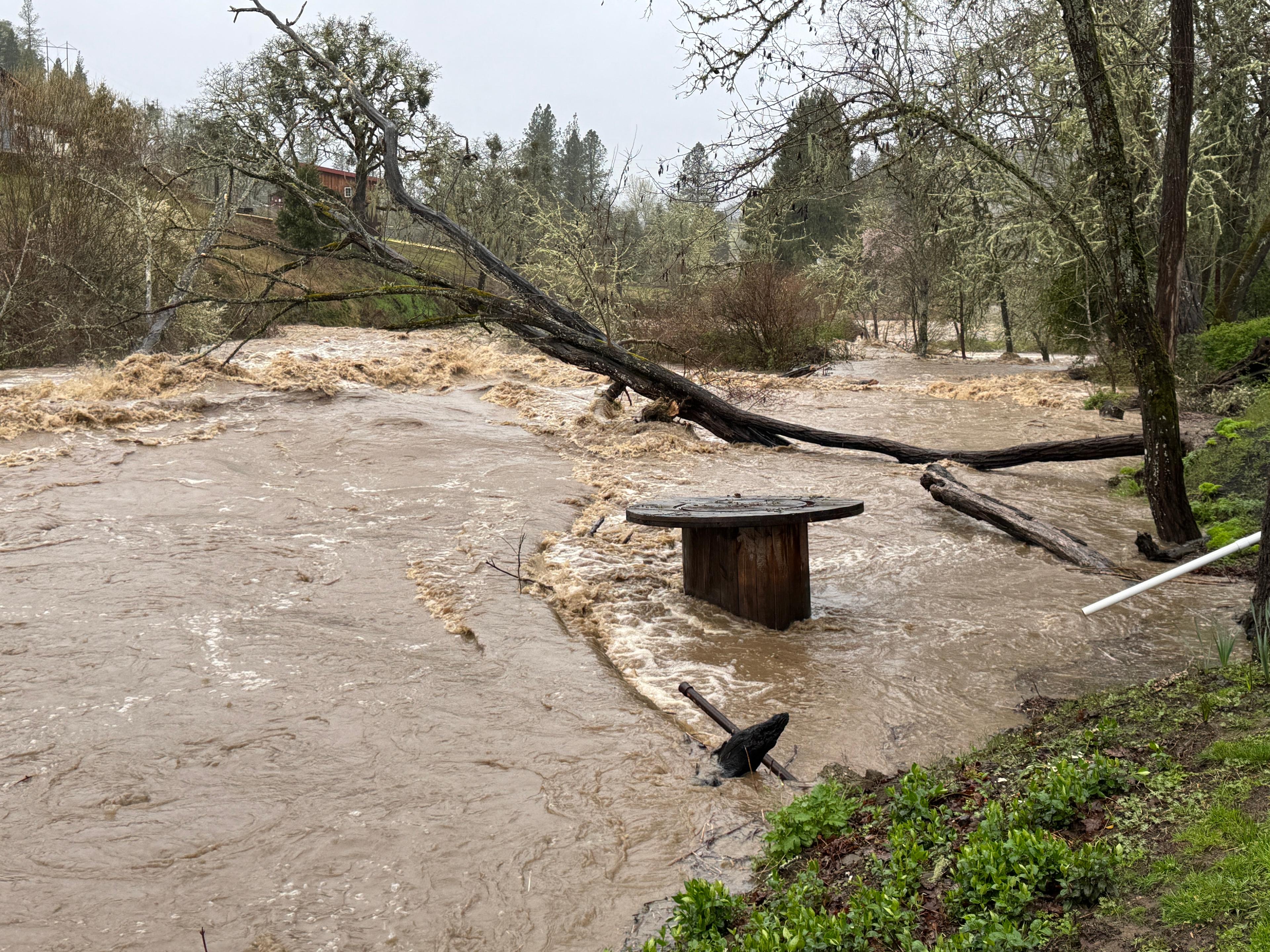 Update: now they’re saying 14.36 feet will be the crest. Deer Creek should be cresting right now at 13.8 feet or so. Just under 2 feet from a record high of 15.4 feet.
