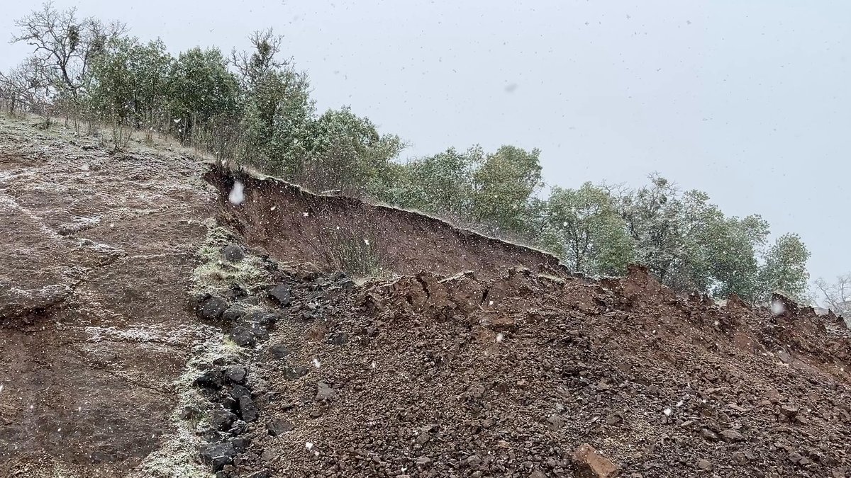 Landslide at the Justice Dept parking lot on the hill near Roseburg Cinema off Garden Valley in Roseburg.
